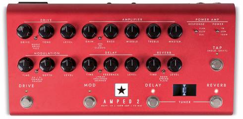 ・AMPED 2 は、フロントエンドにドライブ・セクションを備えた100Wのペダル形アンプであり、従来の真空管アンプのトーンとフィールを実現する高度なエフェクト・プロセッサーです。 ギター・アンプのフロントエンドに接続したり、100Wのキャビネットにパワーを供給できるほか、デスクトップで使用するなど、自身のサウンドをどこにでも持ち運ぶことができます。 出力を1Wに抑えるパワー・リダクションと USB-C接続により、スタジオや宅録環境においても、ステージと同じように使用できます。