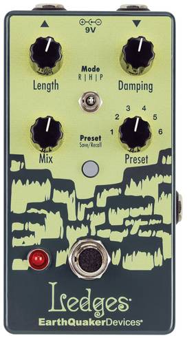 Ledges(レッジズ)は3モード搭載の今までに無い空間を生むリバーブで6つのプリセットの保存が可能。エクスプレッションペダルで外部から各パラメーターの操作が可能で様々なシチュエーションでお使い頂けます。RoomモードでLengthを低く設定し、昔から馴染みの有る様なリバーブを。今までのリバーブでは満足行かない人は、HallとPlateモード、そしてDampingを上手く利用して、オリジナルな空間を作り出す事ができるでしょう。プリセットとの兼用で貴方のリバーブに対しての要求に多様な角度から応えます。