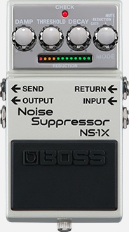 NS-1Xは、BOSS独自のデジタル信号処理技術MDPを駆使した多元的かつ高速な信号処理により、原音のアタックやサスティン、弾き心地を損なわずにノイズを取り除く次世代のノイズ・サプレッサーです。極めて自然にノイズを除去する汎用性の高いREDUCTIONモードと、圧倒的な速さでゲートを動作させ、ハイゲイン・サウンドによるリフ・プレイやタッピング、スウィープなどテクニカルな奏法に最適な効果をもたらすGATEモードを搭載。NS-1Xは悩ましいノイズの問題を取り除くだけでなく、新しい演奏表現をギタリスト/ベーシストへもたらす高度なノイズ・サプレッサーです。