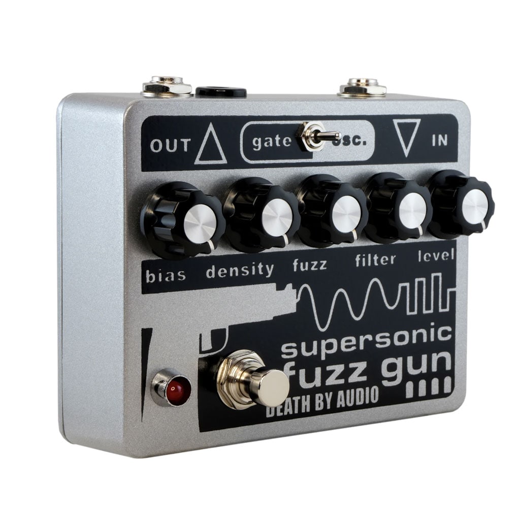 Death By Audio(DBA)の”Supersonic Fuzz Gun”は、最も「ビザール」なファズペダルであり、DBAのロングセラー製品です。特殊なゲートファズ、奇妙な発振とファズ、発振することに重点を置くOSCモードなど、変態ゲートファズの様々なバリエーションをプレイすることができます。