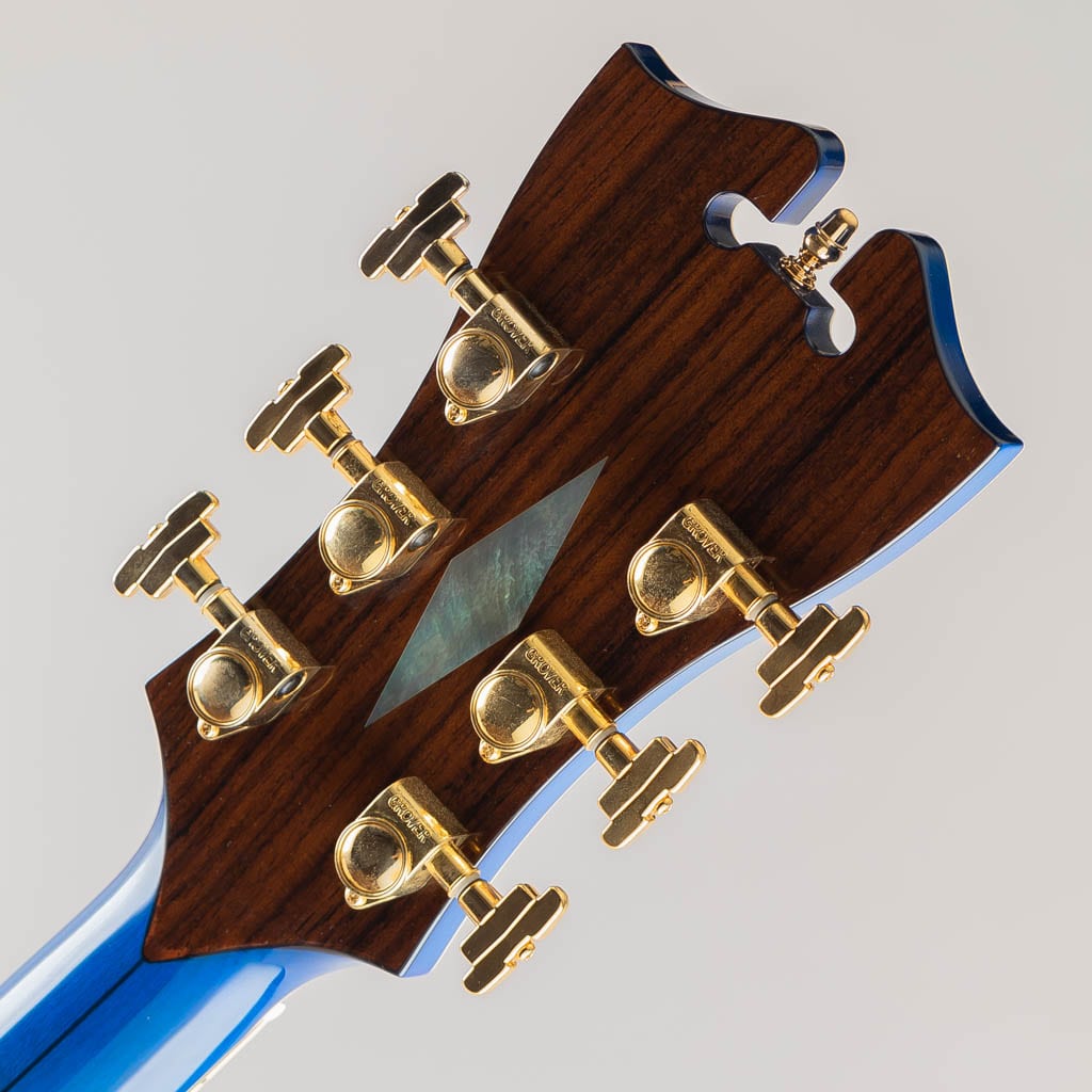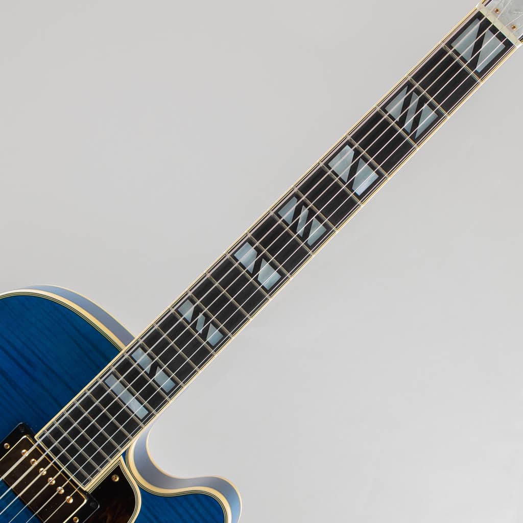 約14.5インチのボディサイズのセミアコ構造、鮮やかなフレイムメイプルを全面に使用したボディ、メイプルネックにエボニー材指板といった豪華なウッドスペック。マルチプライ・バインディングやゴールド・ハードウェアといった豪華で重厚な仕上がりです。ピックアップはオリジナルのハムバッキング・ピックアップを2機マウント。コントロールは2ボリューム/2トーンにピックアップのセレクター・スイッチ。テールピースはディアンジェリコ・オリジナルのトラピーズ・スタイルが採用されております。程よいエアー感に上品な倍音感、ハリのある伸びやかなトーンが心地よく上質のクリーンサウンドからドライブさせての粘りのあるサウンドまで幅広いサウンドメイクにも対応してくれます。