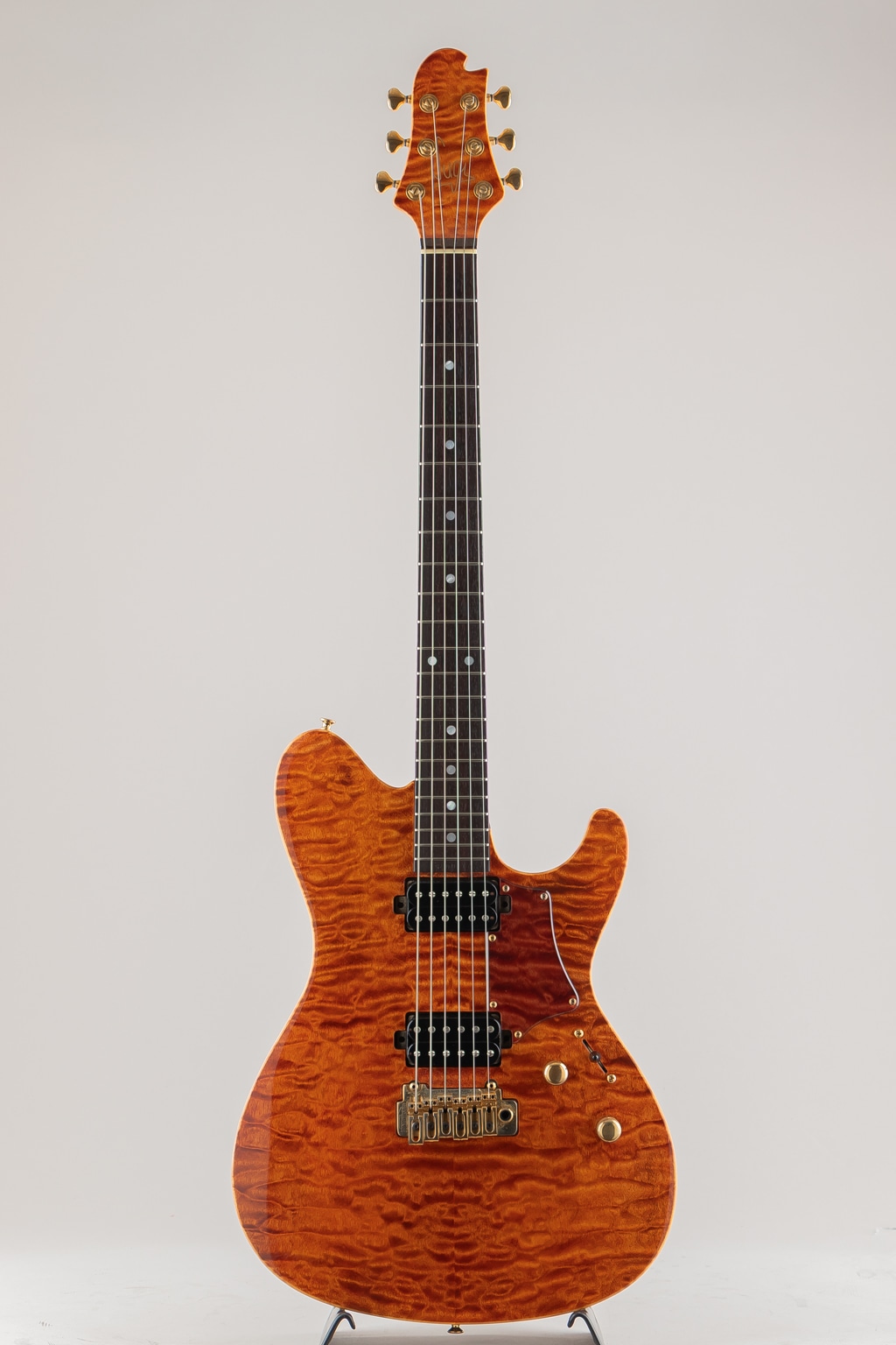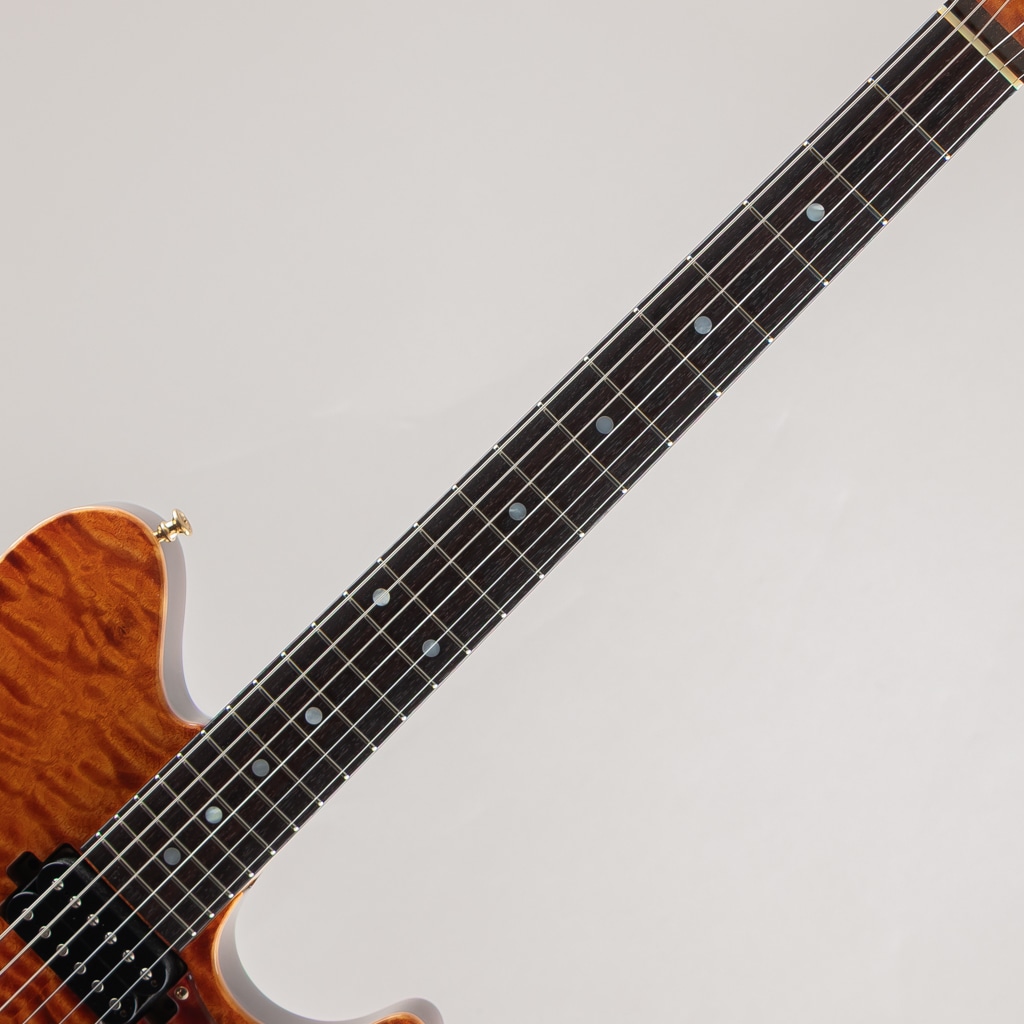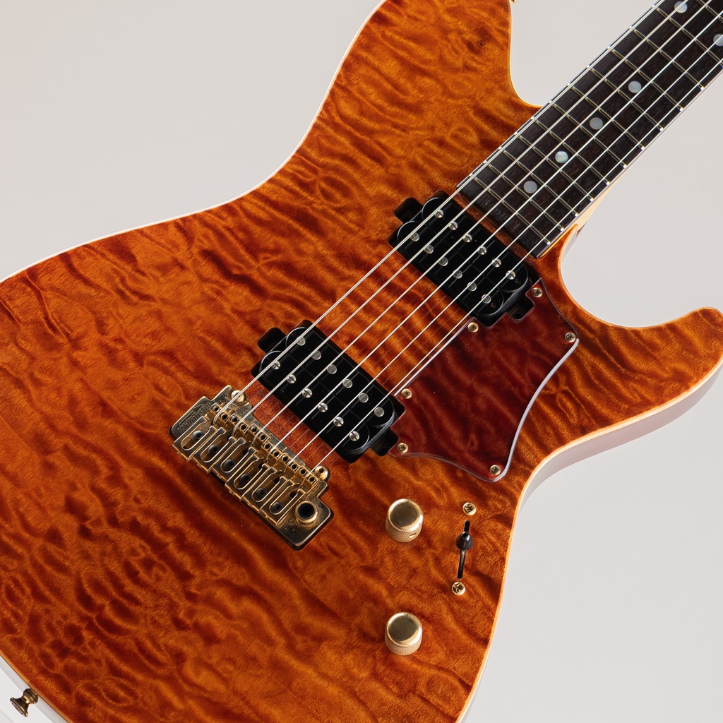 ボディトップとヘッドに鮮やかなキルテッドメイプル、ネックにはタイムレスティンバーメイプルといった希少な木材を存分に使用。ピックアップにはSugiオリジナルピックアップをHHレイアウトでマウント。ローからハイまでクリアな音像でミッドレンジのハリとヌケが心地良く、繊細なニュアンスから響き渡る和音、歪ませてもパワフルかつ芯のクリアな音色は使い勝手が良くジャンルを選ばずにお使いいただけるこれぞハイエンドといった仕上がりです。