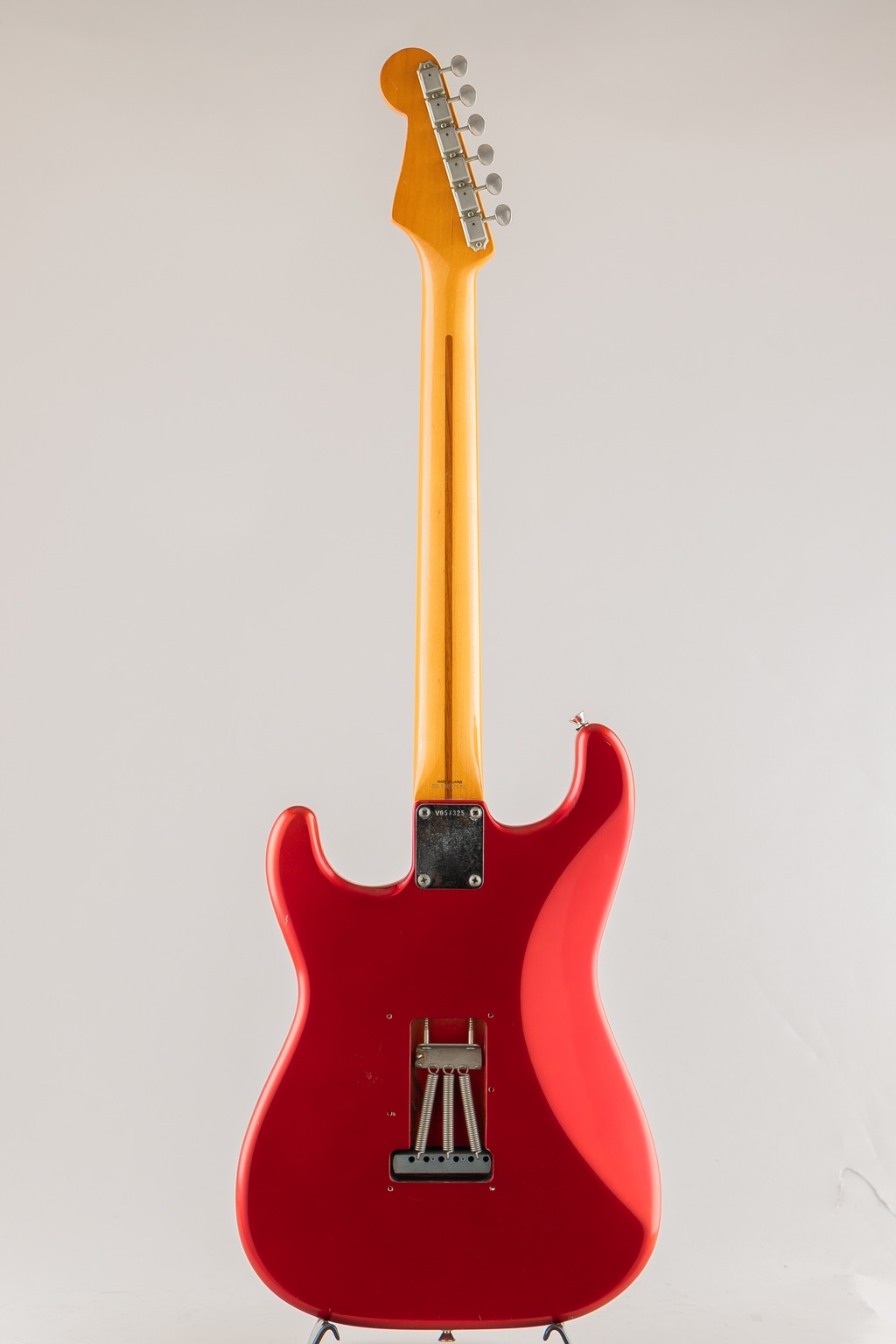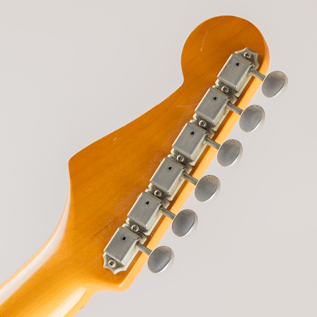 状態としましてはネックジョイントプレートとジョイントビスが2本、アウトプットジャックの交換。バックプレート欠品。全体的に年代相応に弾き傷や打痕、ネックサイドに大きめの塗装剥がれもあり使用感は多く見受けられますが演奏面には良好なコンディションをキープしております。フレットは平均して6割程残り、トラスロッドにも余力ございます。ピックガードは8ホールに3プライと珍しい組み合わせとなっておりますが、こちらは加工跡も見受けられない為オリジナルと判断しております。Fenderブラウントーレックスハードケース、アームバー付属。