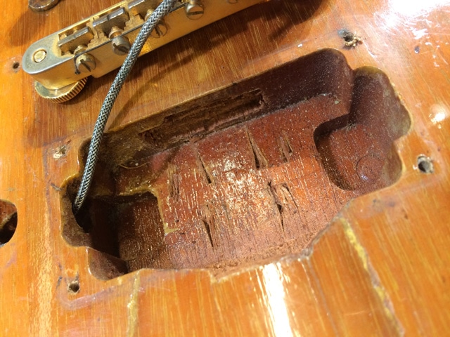 ジャックプレート、セレクターノブ、いくつかのビスが交換。ペグ交換痕、リアPUキャビティに削り痕が見られます(詳細画像有)。ボディバックの表面的なキズやある程度の塗装ウェア等は見られますが、大きく目立つキズやリペア跡はありません。ネックコンディションも良好でトラスロッド余裕も有り、フレット残6割とプレイコンディションは良好です。近年のGibson USA製ハードケースが付属。