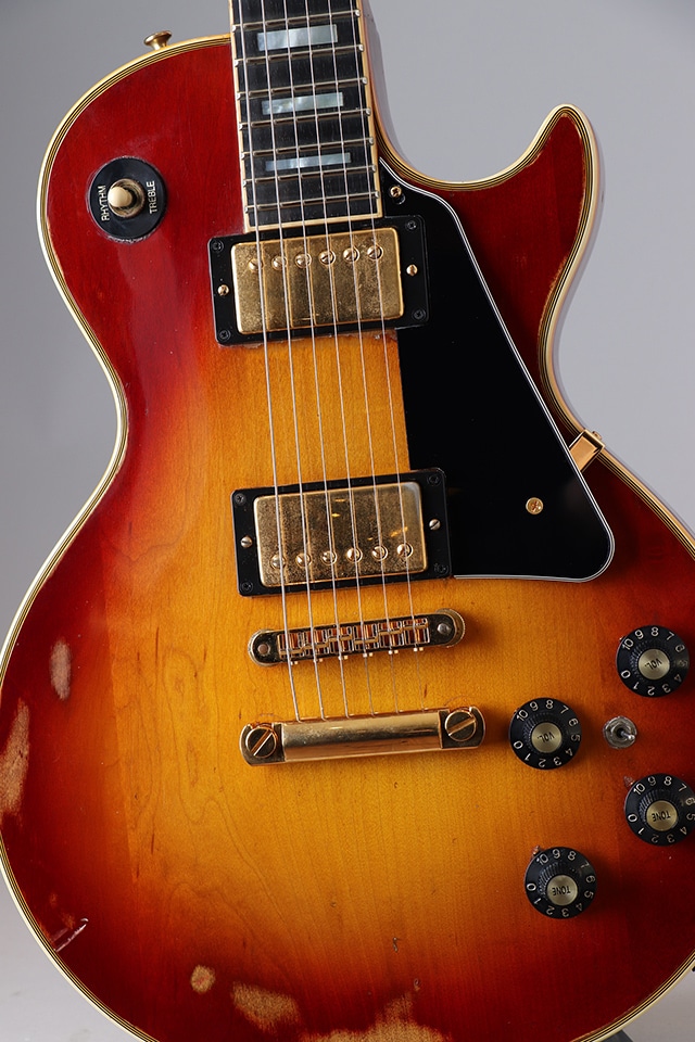 パンケーキ構造、3ピース・マホガニーネック、ナッシュビルブリッジ仕様、1975年製Les Paul Custom Cherry Sunburstの入荷です。