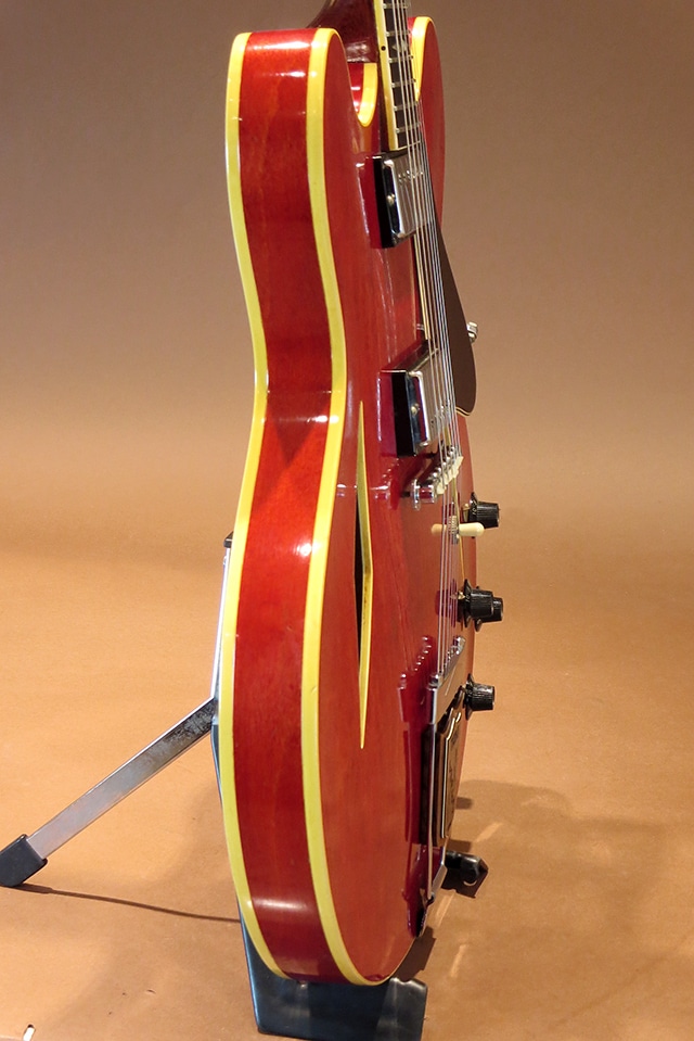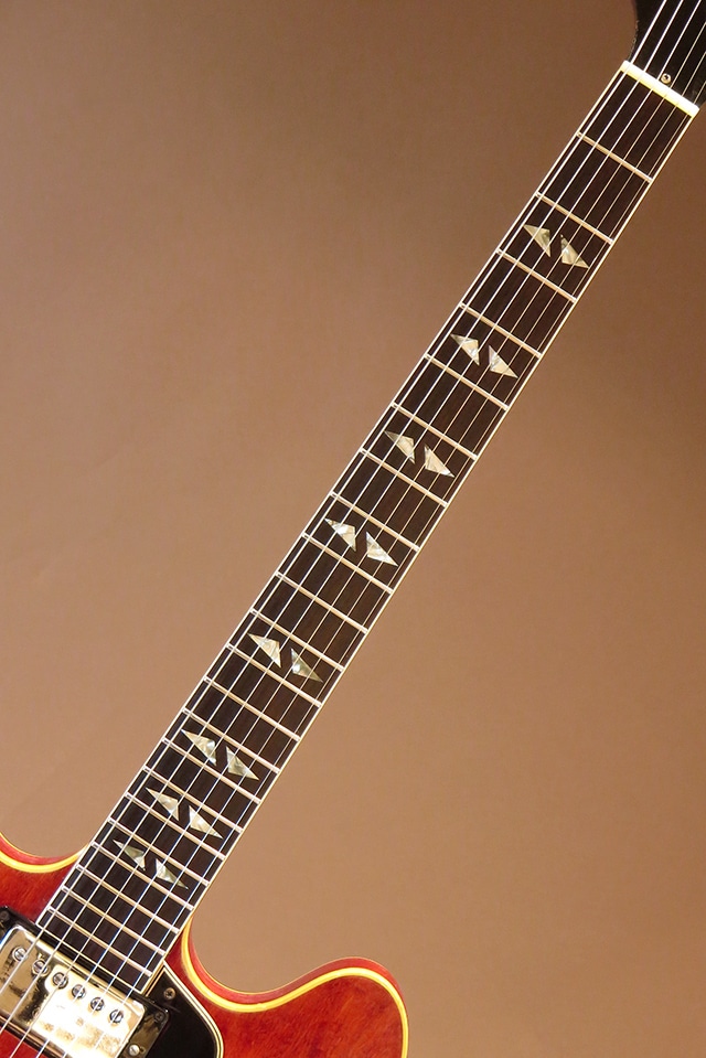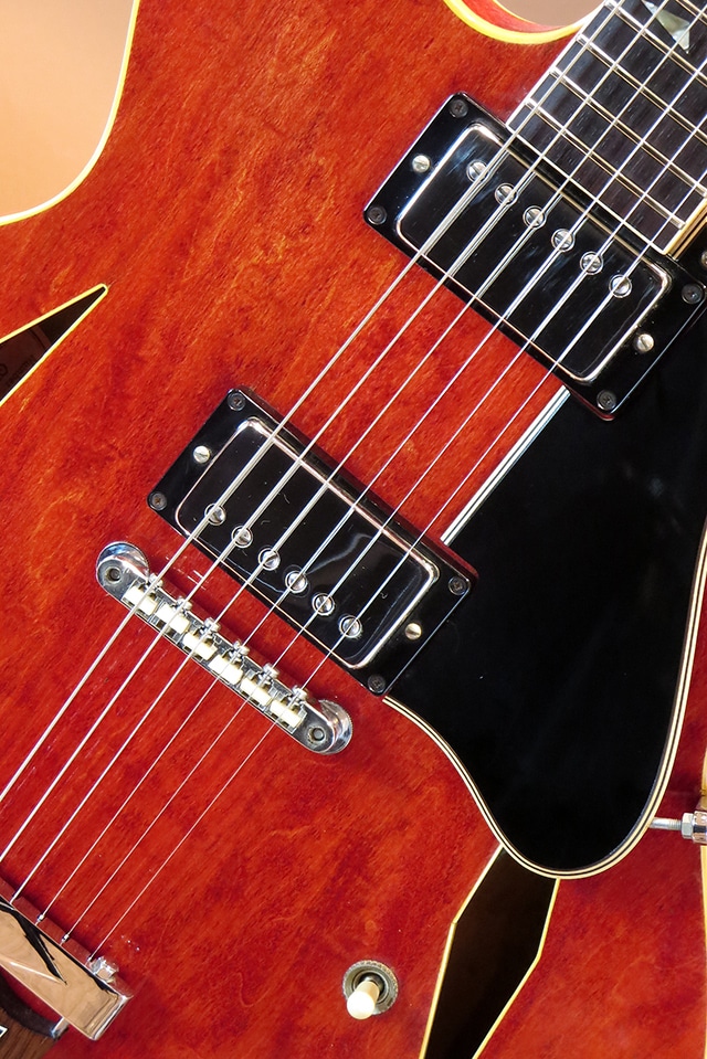 申し分のない音圧を持ちながらもエッジの効いた特有のタイトさがあり、嫌味なく素早く立ち上がり抜けてくれる存在感は絶妙です。セミアコらしい広がりや甘さに押し出しの強さが加わった印象もあり、特に各弦の分離感は335よりも良いように感じます。