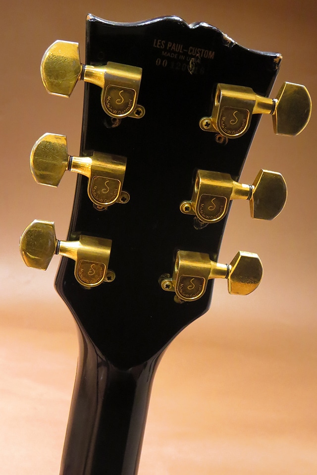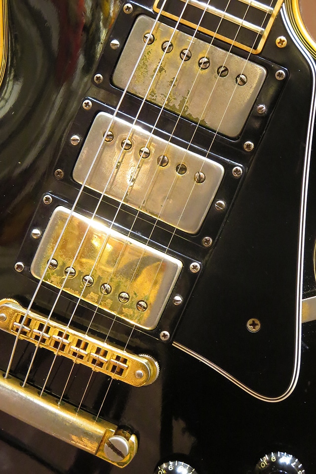 パンケーキボディに3ピースメイプルネック、希少な3pickup Les Paul Customです。当機はピックアップが刻印ナンバードからナンバードPAFに3基とも交換、ピックアップはさらに古い物が搭載されていることになります。ヴィンテージカスタムらしい芯の太さ、豊かな低域を持った重厚なサウンドは、太さがありながらもクリアに抜けてくれる粒立ちの良さや煌びやかさがあります。まさにはハードロックにベストマッチな期待通りのグッドトーンです。