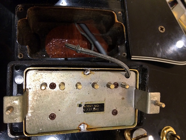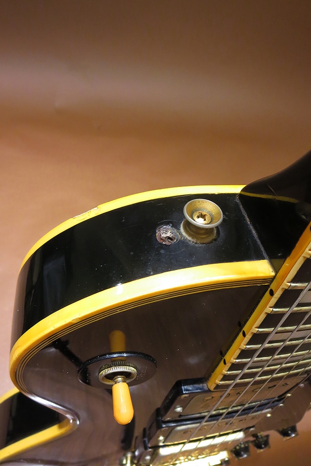 しっかりと弾き込まれてきた様子の年式相応ビンテージらしい風合いです。ストラップピン穴痕有。ポット、コンデンサー、ペグ、ノブ等が交換されております。ネックコンディションは良好でトラスロッド余裕有、フレット減りは見られますが、残5割とプレイコンディションは良好です。オリジナルハードケースが付属します。