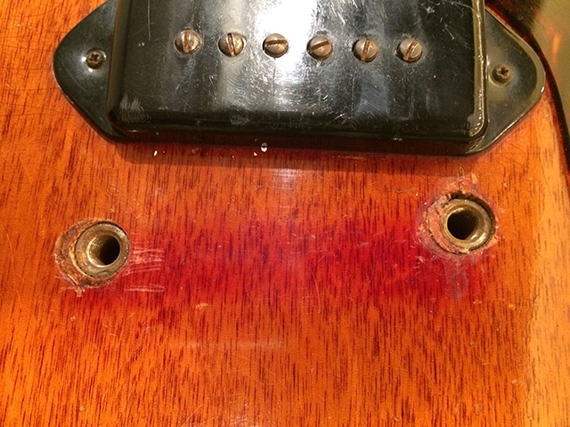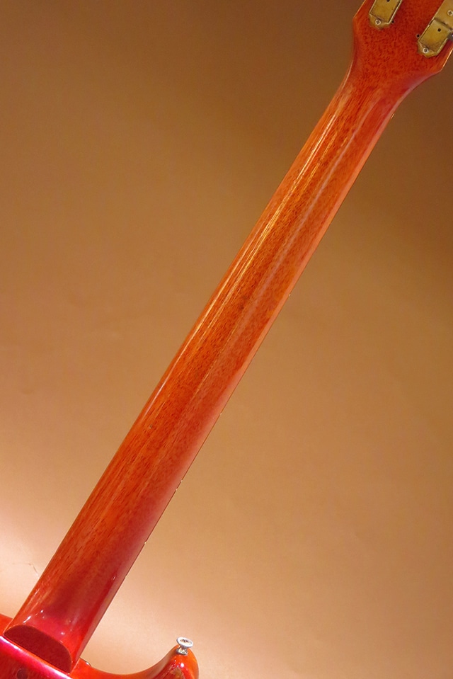 表面的なキズ等は散見されますが大きく目立つキズ等はありません。ペグ交換痕、ストラップピン位置移動、ブリッジアンカー位置移動歴有り。ポット、ノブ1つ、ブリッジが交換。ネックコンディションは良好でロッド余裕も有り、リナット&リフレットされており残りもまだございますので演奏面も良好で弾きやすくまだまだお使い頂けるコンディションです。汎用ハードケースが付属。