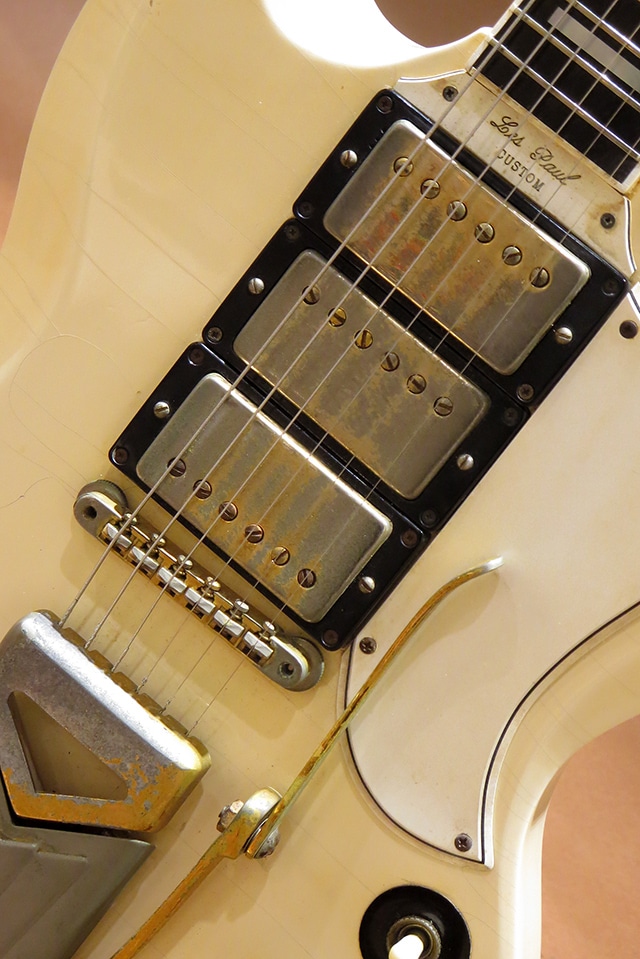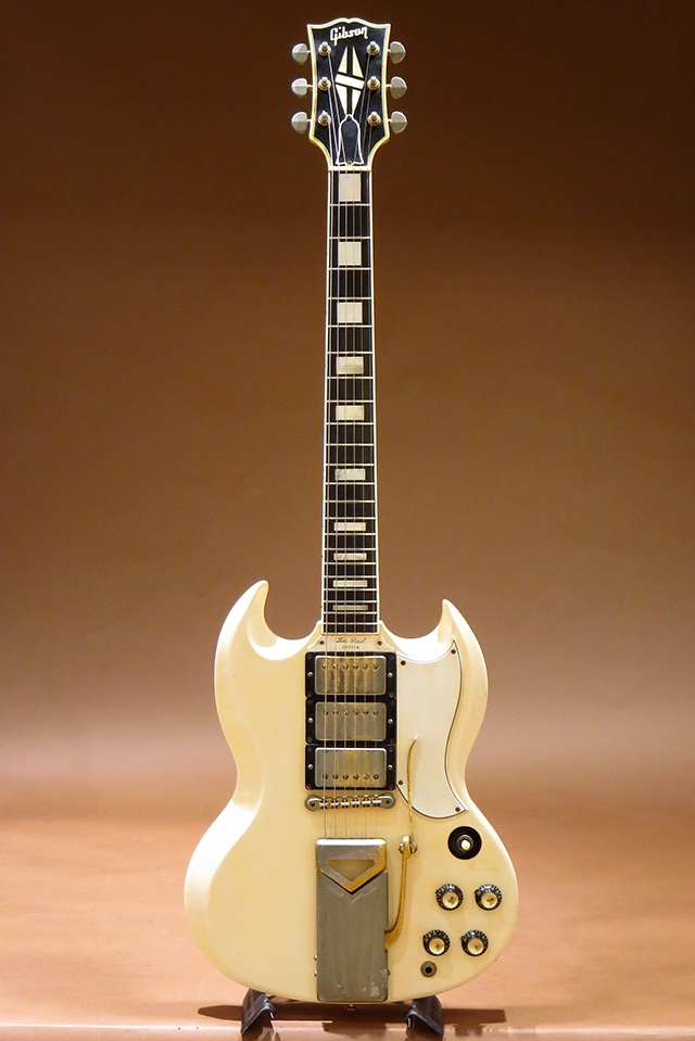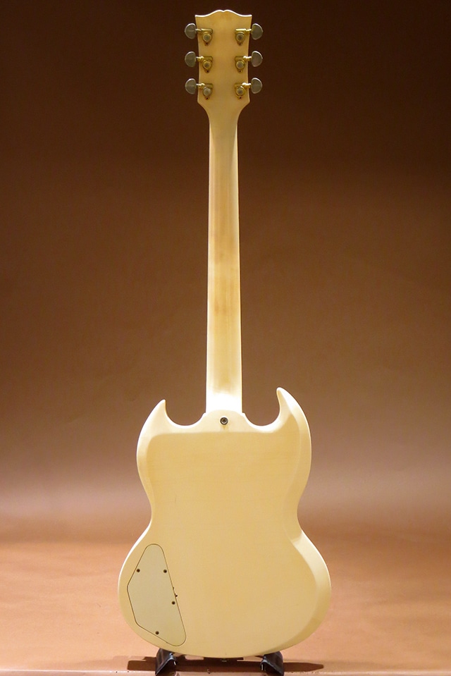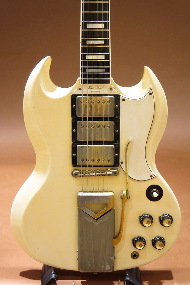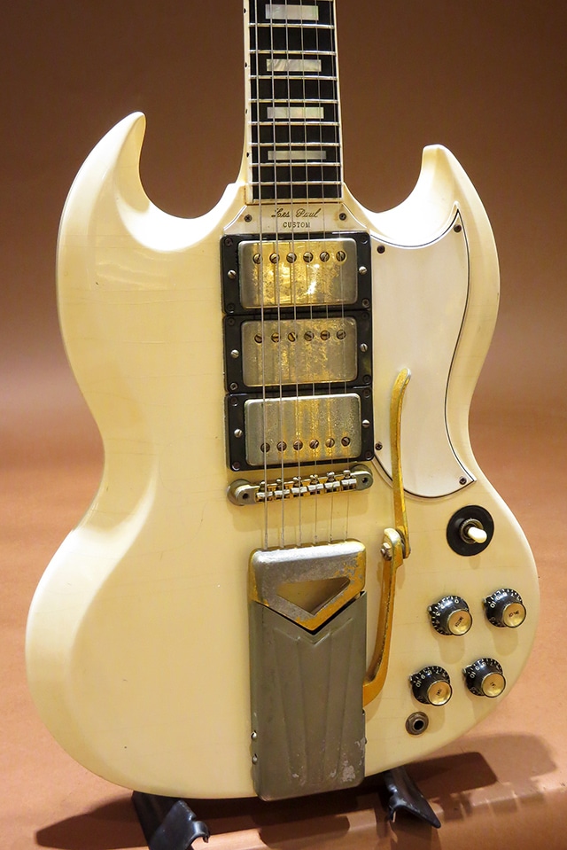 1954年に登場したLes Paul Custom、Les Paul Standardと同じくして61年初頭にSGスタイルへモデルチェンジ、その後63年後期からは正式なモデル名が"SG Custom"と変更されていきます。当機はネックエンド・スペーサーにLes Paul文字が見られる1962年製です。