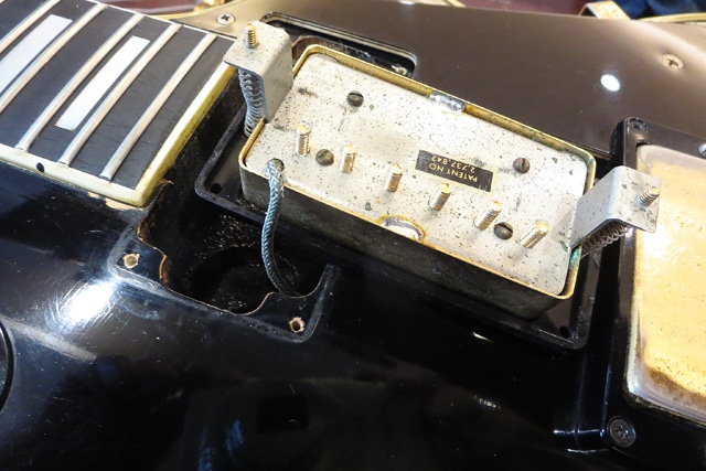 ペグ、ブリッジサドル・トーンポットx2・ノブ類・ジャックプレート等が交換。
