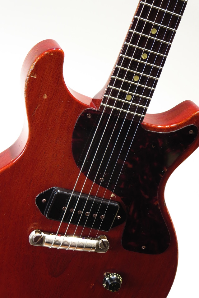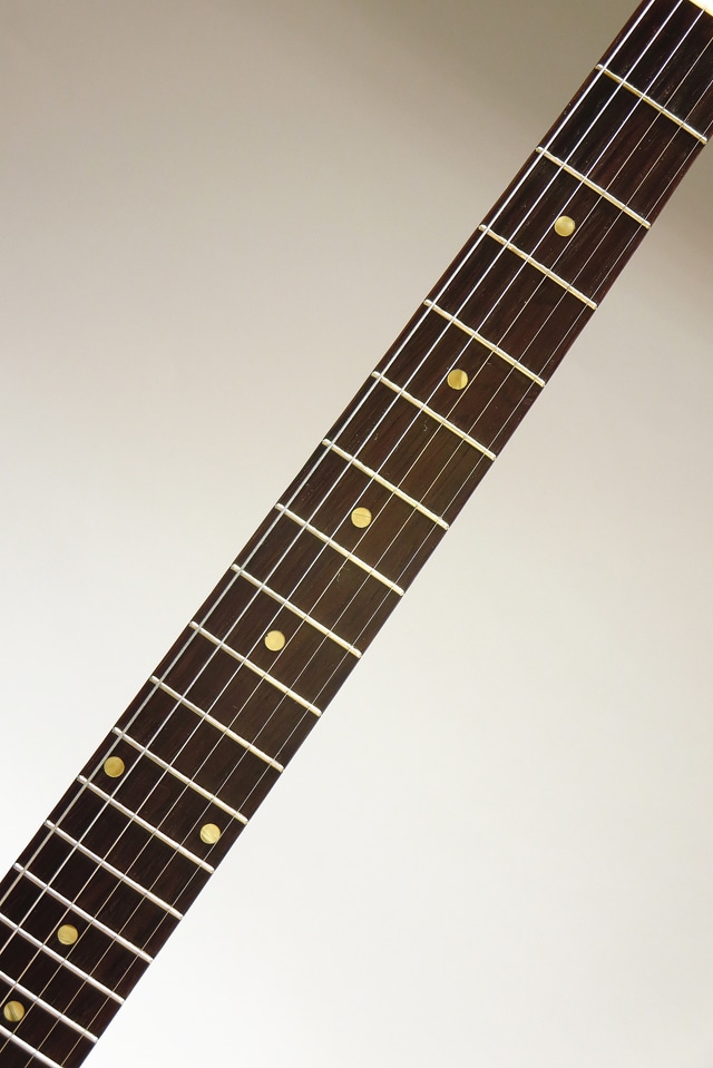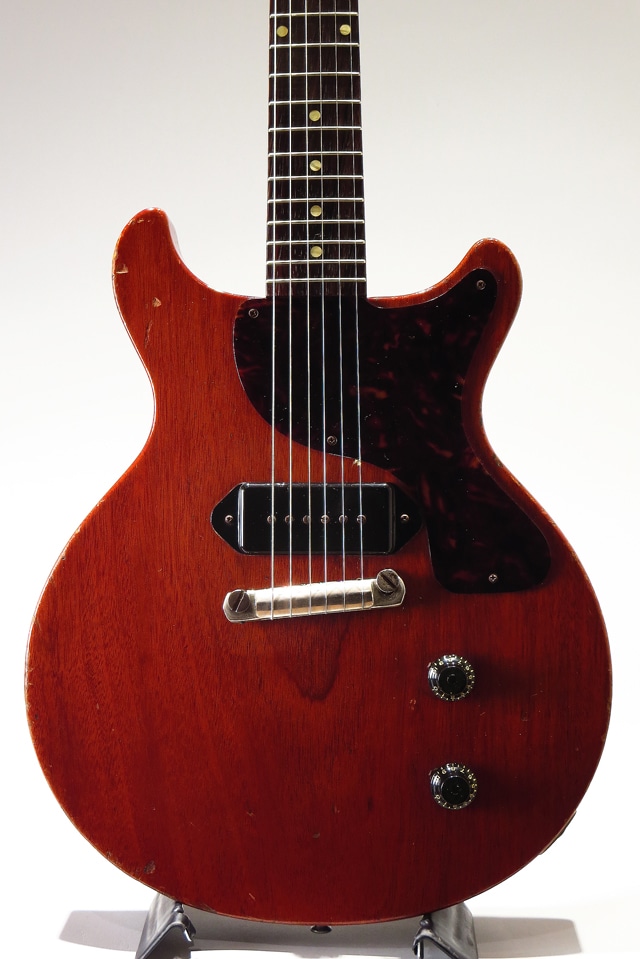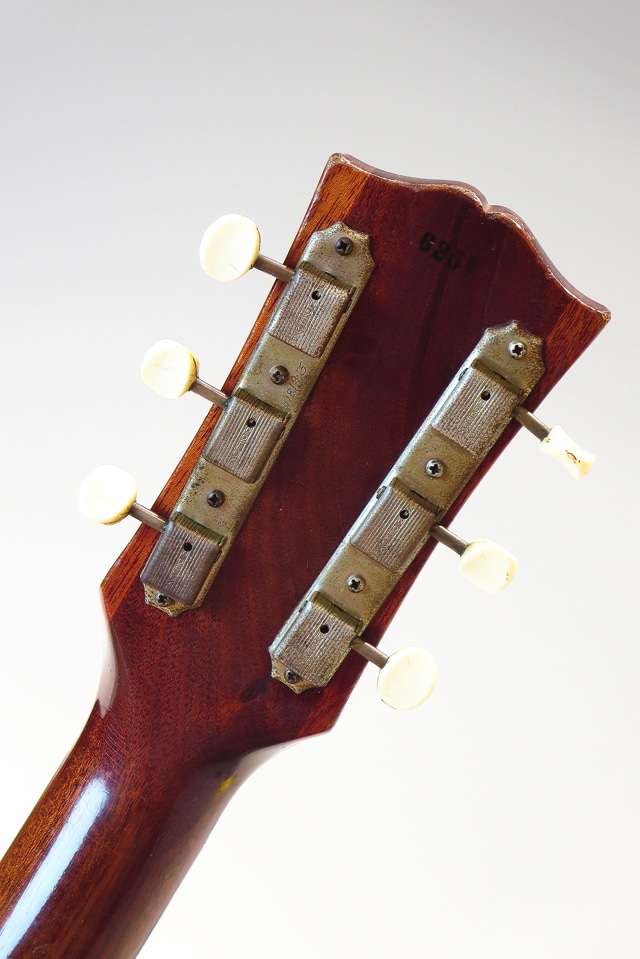 ボディーのエッジ部が割と角張ってる印象を与えるのもこの年代の特徴です! ボディー&ネックには当時の良質なマホガニーと指板にはブラジリアンローズウッドが贅沢に使用され されております。ラップアラウンドブリッジは弦振動をダイレクトにボディーに伝え豊かな生鳴りも非常に心地の良い1本です!もちろんプラグインした時のP-90サウンドはエッジ感とファットさが絶妙でストレートなロックサウンドにはもってこいのモデルです。 ヘッド・ボディーまわりには年代相応に使用感は見られますがトラスロッドカバー以外のパーツ類は全てオリジナルパーツで統一されており超オススメの1本です! 気になる方は是非この機会に、、、、、*汎用ハードケース付属! Body:Mahogany