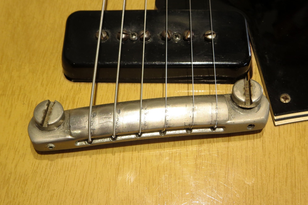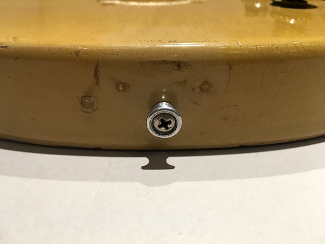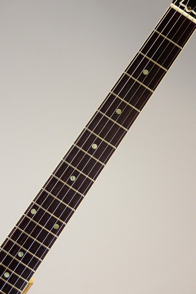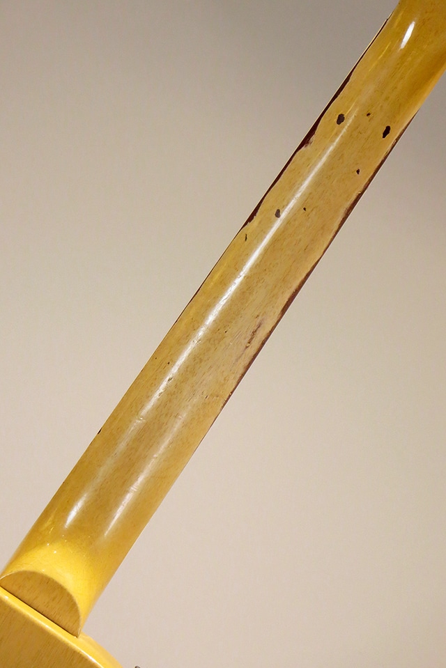 ある程度のキズや塗装の剥がれ、チェッキング等は見られますが、経年を考慮しますと全体的にコンディションは良好です。エンド側ストラップピン辺りにブランコテールピースを搭載していたビス穴跡等が見られます。パーツのオリジナル度の高く、ピックアップやサーキット周りもオリジナルをキープしております。 ネック周りも良好でオリジナルフレットの残りも有り、演奏面も問題無く良好です。重量も約3.34kgと軽量な点も魅力的です。
