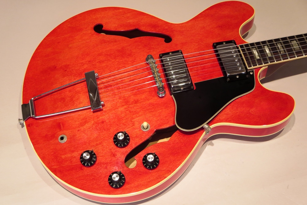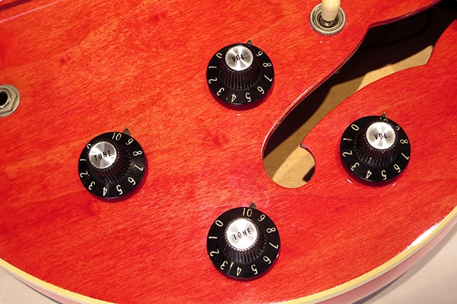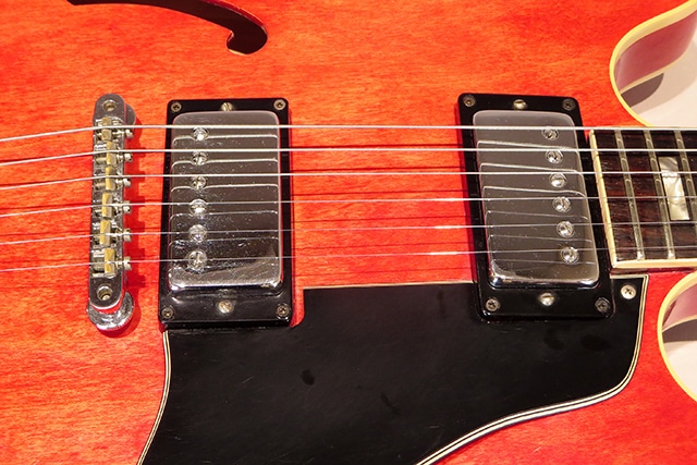 この時期特有のボディ内の空洞が大きめな構造から、豊かな生鳴り、そのアコースティック感も持ち味の年代です。エアー感の中に音像のクリアな透明感のある響き、立ち上がりや反応も申し分なく、押し出しの強い芯のしっかりとしたグッドサウンドを聞かせてくれます。