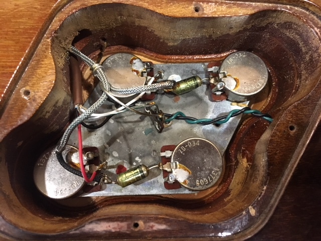 ボディバックにキズや塗装剥がれ箇所等経年は伺えますが、ボディトップには大きなキズ等はありません。ブリッジ周り、ジャック、フロントPUエスカッション等が交換。