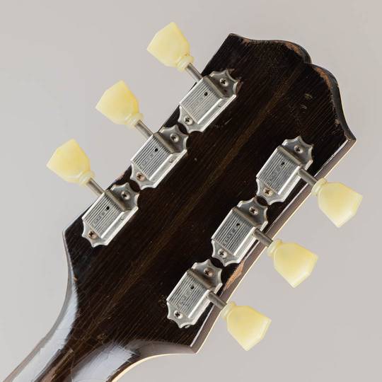 フレットとナットはオリジナルから交換されておりますが、フレットの残量は7割程残されており、トラスロッドの締め幅は年代物にしては左右ともにまだ余裕が残されておりますので、これからもご愛用頂けるネックコンディションでございます。塗装は全体的にチェッキングが進行しており貫禄のある佇まい、ネックバインディングの一部が剥がれた経歴があるのか補修された形跡がございます。ペグ、コントロールノブ、フロント側のコンデンサーがオレンジドロップへと交換されております。