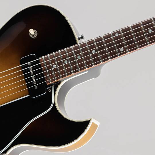 センターブロックを要したセミアコ構造を採用した本機。ウッドマテリアルはラミネイトメイプルボディ/メイプルネック/ローズウッド指板で構成。ES-335に比べ厚みのあるボディ、フローレンタインカッタウェイを採用することによりES-175に近いボディシェイプとなっております。ナット幅約43mmのネック厚がやや薄めのシェイプを採用。ピックアップにはP-100を2機搭載。P-90に比べ太くまろやかなでありながらも歯切れの良さを感じるサウンド。ジャズやブルースなどクリーンを主体にプレイするジャンルにおすすめでございます。