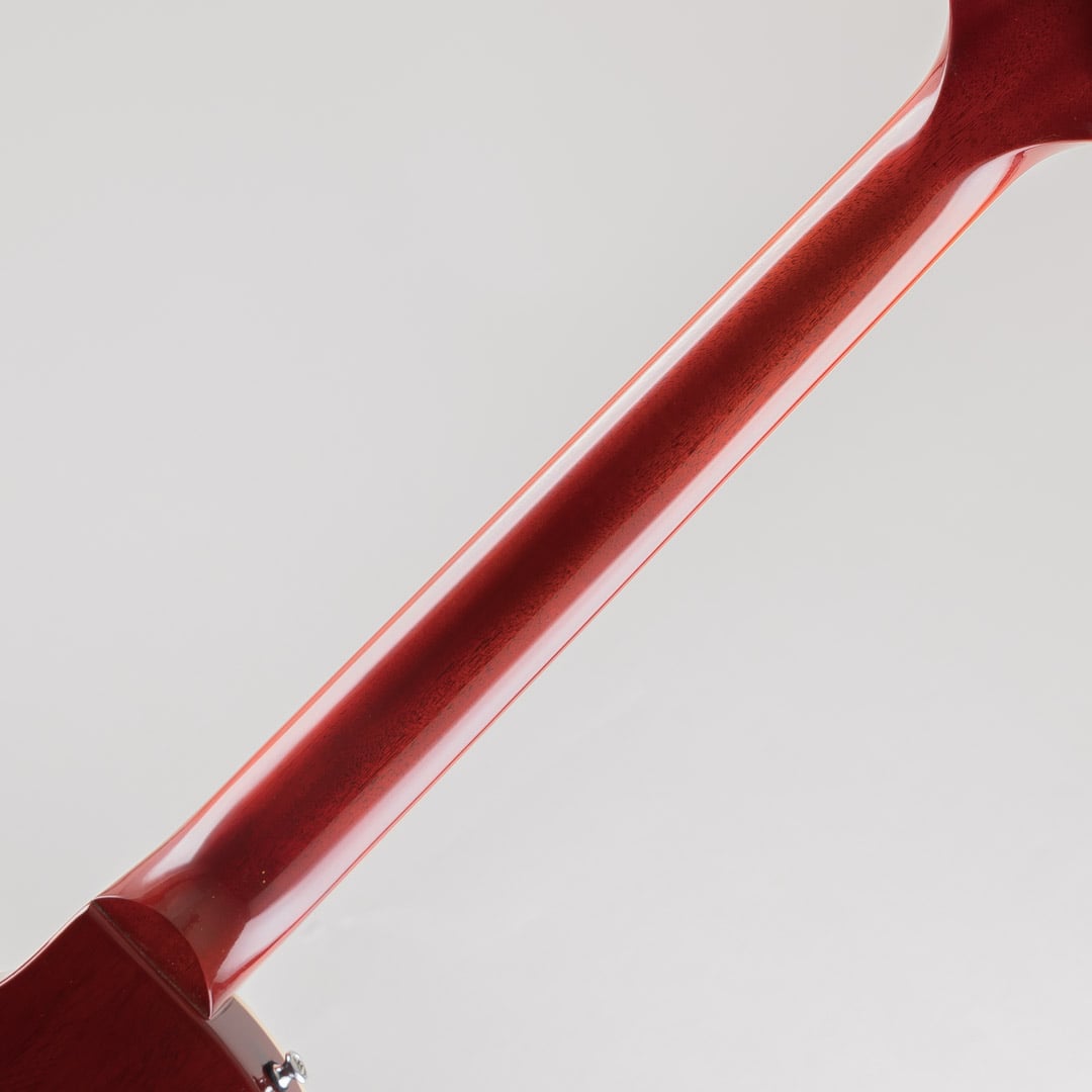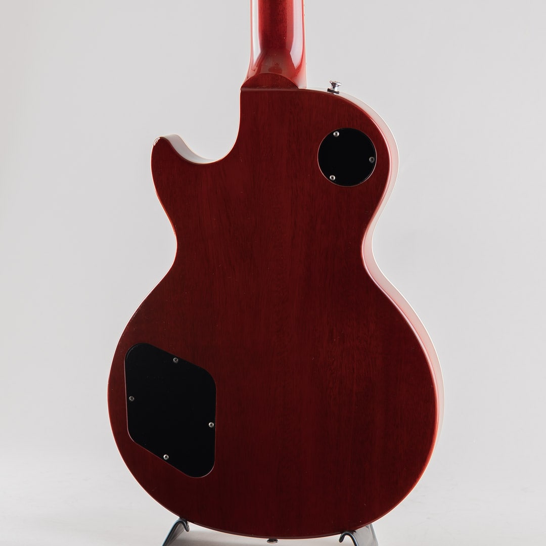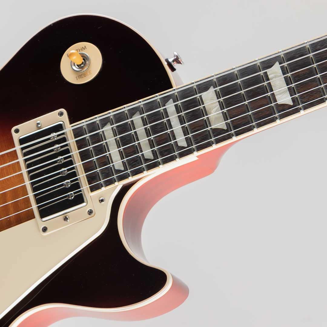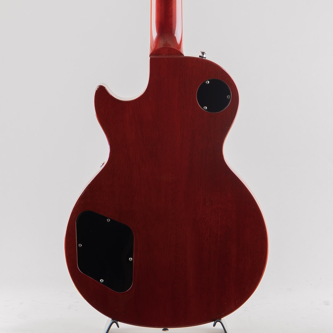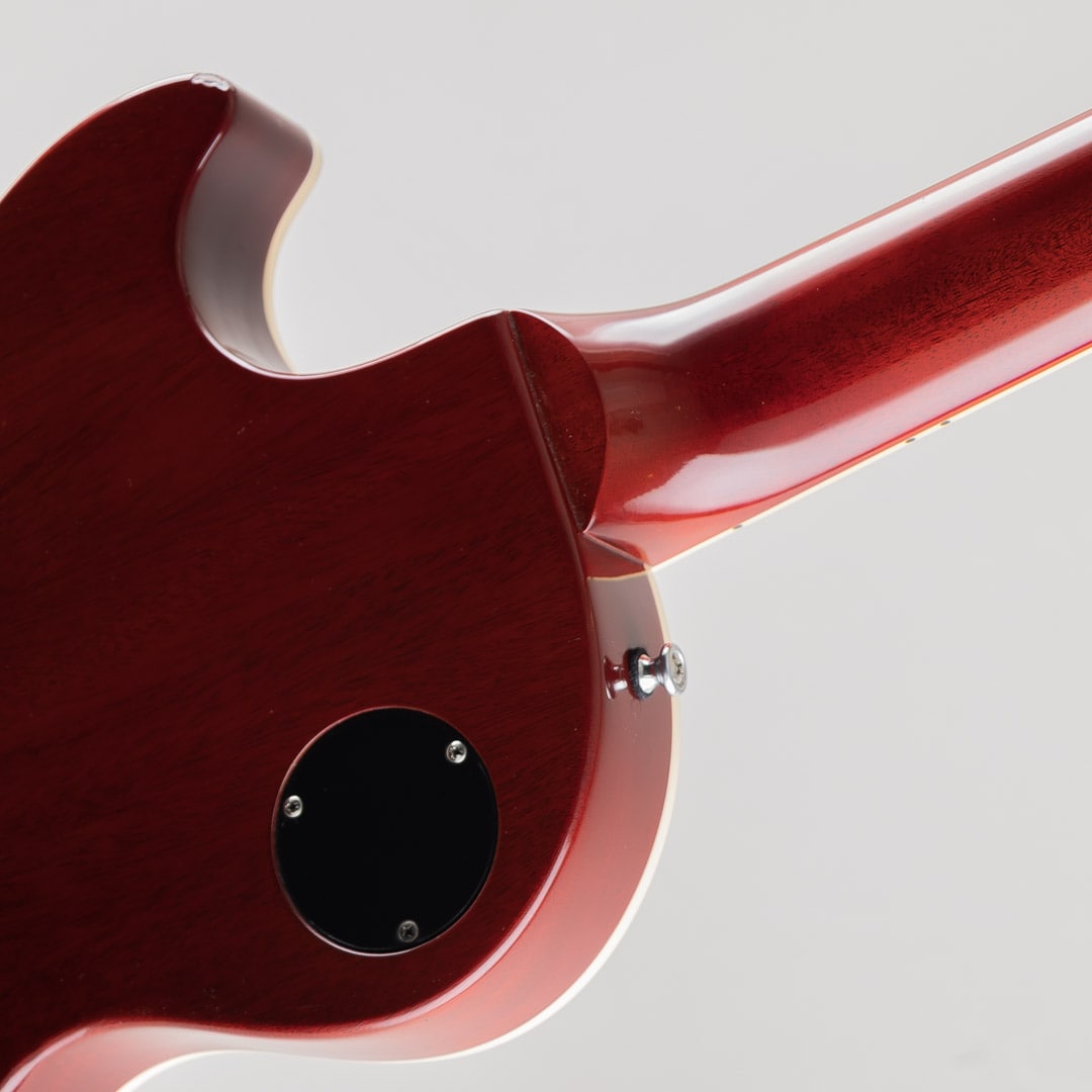 当機は原点回帰的といった名目にて様々な使用が見直された2019年製個体。ウェイトリリーフ(肉抜き軽量化)を無くしたソリッドマホガニーボディ、AAグレードフィギュアドメイプルトップ、マホガニーネック/ローズ指板といったウッドマテリアル構成。ネックシェイプにはやや薄めのスリム・テーパーグリップを、滑らかに処理された指板サイドエッジやミディアムジャンボフレットも相まって演奏性の向上が図られております。ピックアップには60's Burstbuckerを、コンデンサーにはオレンジドロップを搭載。コントロールはセレクター・各ボリューム&トーンのシンプルなサーキットレイアウト。