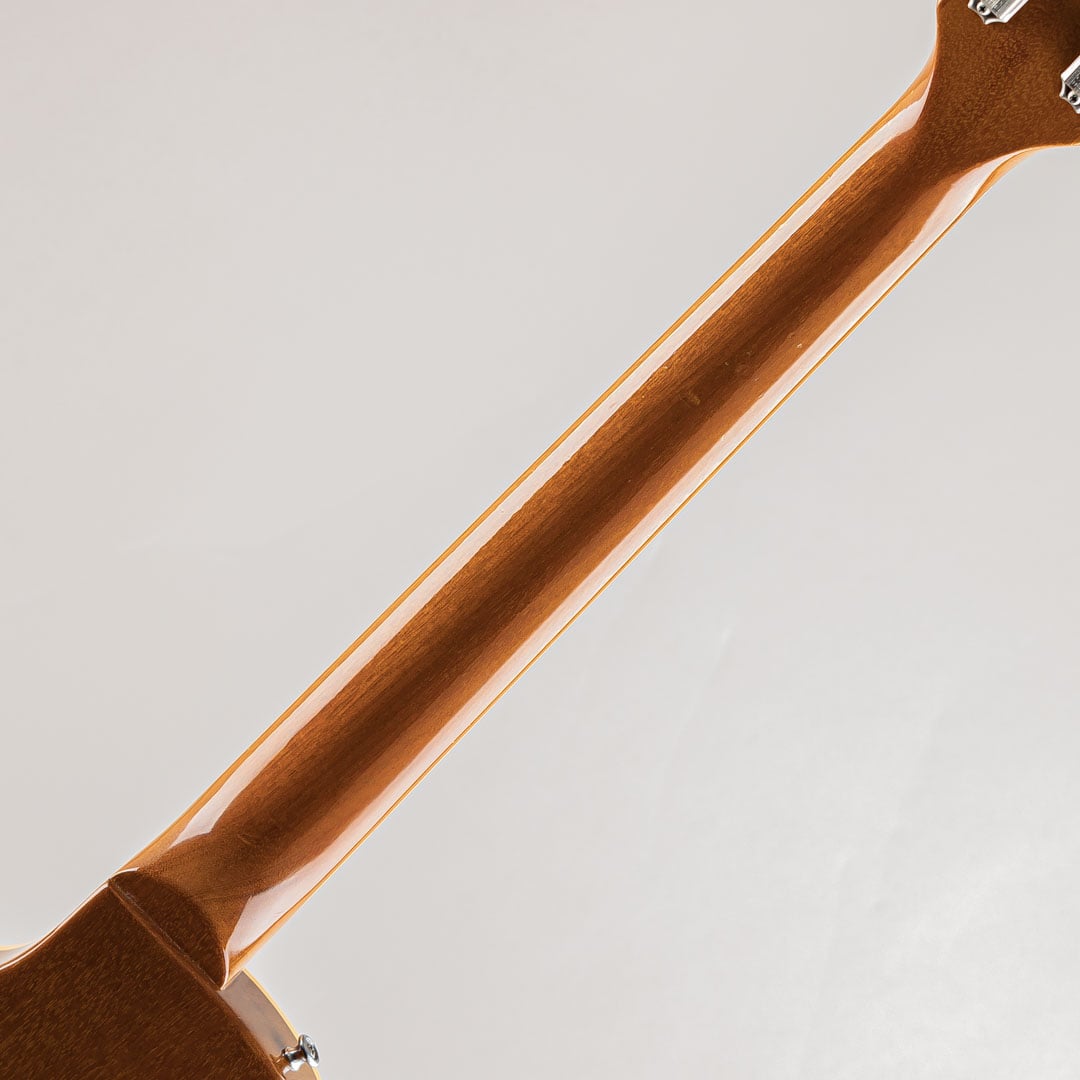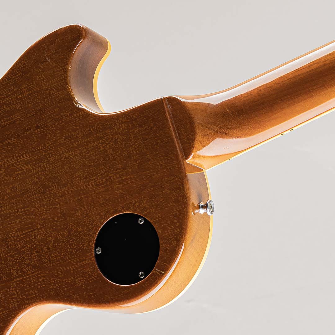 ウッドマテリアルとして、ボディはウェイトリリーフされていないワンピースマホガニーにメイプルトップ、ネックにはマホガニーとローズウッド指板の組み合わせ。ネックシェイプは60年代のシェイプを再現したスリム・テーパーが採用され、薄めのCシェイプによりローポジションからハイポジションまでプレイアビリティの高いのネックシェイプでございます。