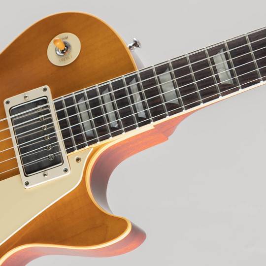 近年リファインされたより当時に近いヘッドトップの“Gibson”&“Les Paul”ロゴ、指板のディッシュインレイ素材の色味、サーキット内のポットやバンブルビーコンデンサーもビンテージライクな仕様が採用。オールニカワ接着やトゥルーヒストリックパーツ採用等の基本仕様も、勿論継承されております。