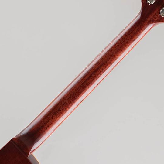 主なスペックは、ワンピースマホガニーバック/メイプルトップ/マホガニーネック/ローズ指板のウッドマテリアル。カラーにはダーティ・レモン、フィニッシュはVOSを採用致しました。そして一番の推しポイントはV2ネックを採用した点でございます。R8のネックシェイプはヒスコレのラインナップ内において、太くどっしりとしたかまぼこ形状が特徴的。太いネックからなるボトムの深いサウンドはR8にしか出せない魅力的なサウンドではございますが、プレイアビリティにおいて弾きづらい、、、という点もございます。そこを60年中期ごろのシェイプを再現したV2ネックを採用したことにより、R8モデルとは思えない快適な弾き心地を実現。加えて、少しブーミーさを感じられる低音域はスリムな印象となり、トレブリーさが増した印象でございます。搭載されたCustombuckerピックアップからなるサウンドも心地よく、オリジナルサウンドに迫る軽快な立ち上がりのスピード感、反応の良さ、それでいてくもりの無い音像と芯の太さを持った、素直に良いと感じさせてくれるグッドサウンド。軽量ながらガツンと力強く抜けるトーンはクリーンから深く歪ませたドライブサウンドまで、楽器の”楽しさ”を感じさせてくれるクオリティでございます。
