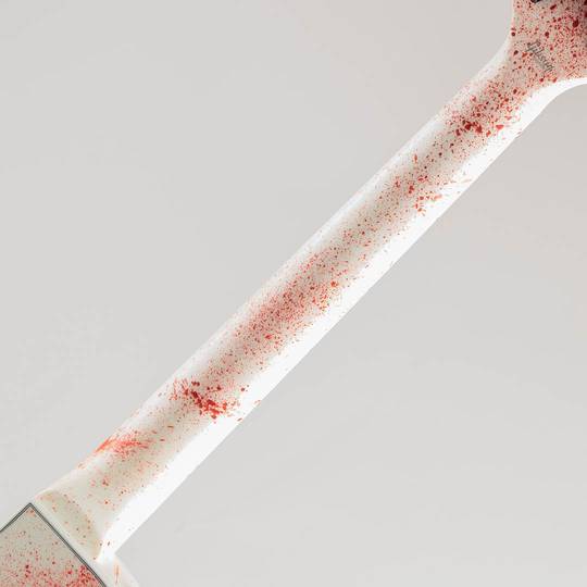 まずカラーにはMod Shop限定のSlasher Flickを採用。意味は恐怖映画などを意味しており、こちらが身構えてしまうほどの禍々しさというのが見事に演出されており、手にとった瞬間にデスメタルを弾きたくなるそんな1本でございます。ウッドマテリアルはカタログモデルのカスタムに準じ、マホガニーボディ/メイプルトップ/マホガニーネック/エボニー指板にて構成されておりますが、通常のカスタムとは違い、ロック式のレッドカラートグルスイッチ/グローバーペグ/オープンバッカースタイル/コイルタップ機構等が採用されており、あらゆる場面に遭遇した際にも対応しやすい仕様となっております。