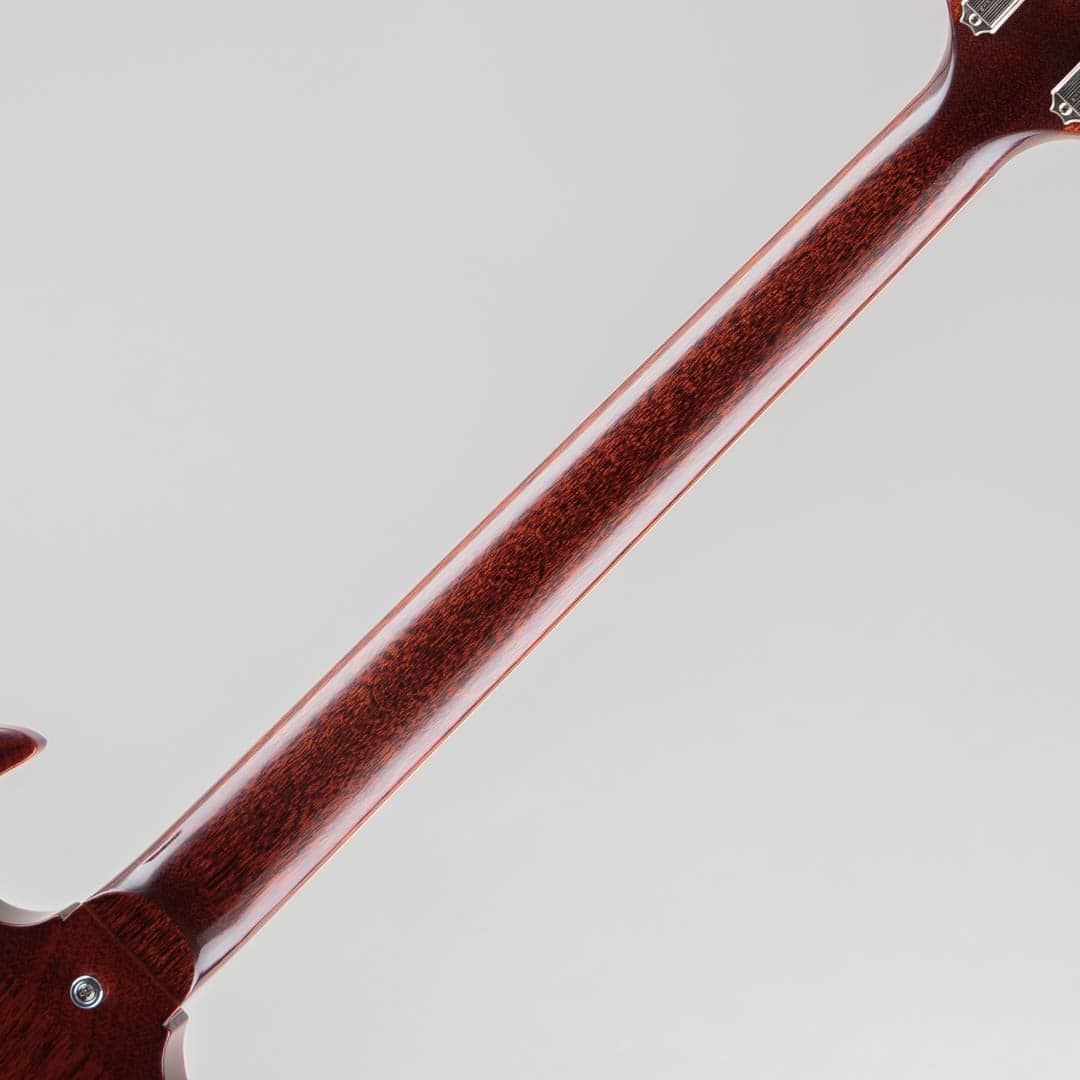 ウッドマテリアルはワンピースマホガニーボディ/マホガニーネック/ローズウッド指板にて構成。左右非対称のダブルカッタウェイ構造はハイポジションへのアクセスが容易となり、細身の1960 Slim Taperシェイプと相まって、非常に快適な演奏性を実現しております。フィニッシュはVOS仕様となり金属パーツのくすみ/若干の錆加工と、アニリンダイ染色のチェリーレッドカラーは雰囲気抜群の仕上がりでございます。