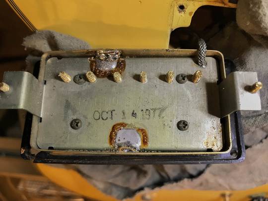 製造から年月が経過してることから、Whiteカラーは日焼けが進みアンティーク感のある色合いへと変化。塗装チェッキング、打傷、擦れ等経年相応の使用感はございます。ネックが折れた経歴があるのか、ナット裏に補修された形跡がございます。しかしながら綺麗に修繕が施されておりますので、現状問題なくご使用いただけるかと存じます。主要なプラスチックパーツ(コントロールノブ、ピックガード)、ブリッジ、ジャックプレート、ストラップピンが交換されております。ナットとフレット、ポッド周りはオリジナルのコンディションをキープ。フレット残量は7割ほど残されており、トラスロッドの締め幅はまだ余裕が残されておりますので、まだまだ現役でお使いいただけます。