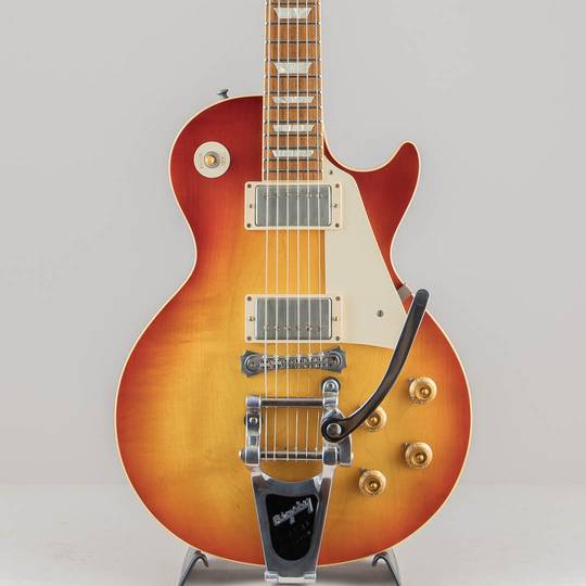 ピックアップにはCustombuckerを2機搭載。フレッシュさを感じさせながらも奥深くに枯れたニュアンスがあり、コードの分離感にも優れております。搭載されたビグスビーユニット独特の浮遊感のある響きは通常のレスポールではなかなか味わえないサウンドでございます。