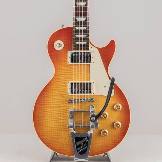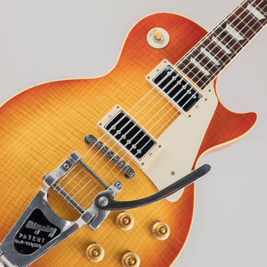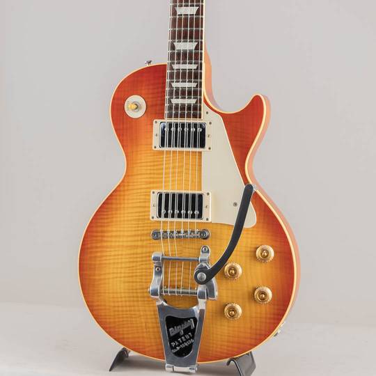 1991年より発売が開始されたHistoric Collection Les Paul Reissue、その後1993年に正式に設立となるCustom Shopにおいて、その歩みと共に、あらゆる仕様/ディティールのアップデートを図り、完成度を極めてきた絶対的フラッグシップモデル。本機ではブラジリアンローズウッドを指板に採用した事により、未だ市場でも大変な人気を誇る2003年前期のみ製造、さらにはビグスビーが搭載された希少モデルでございます。
