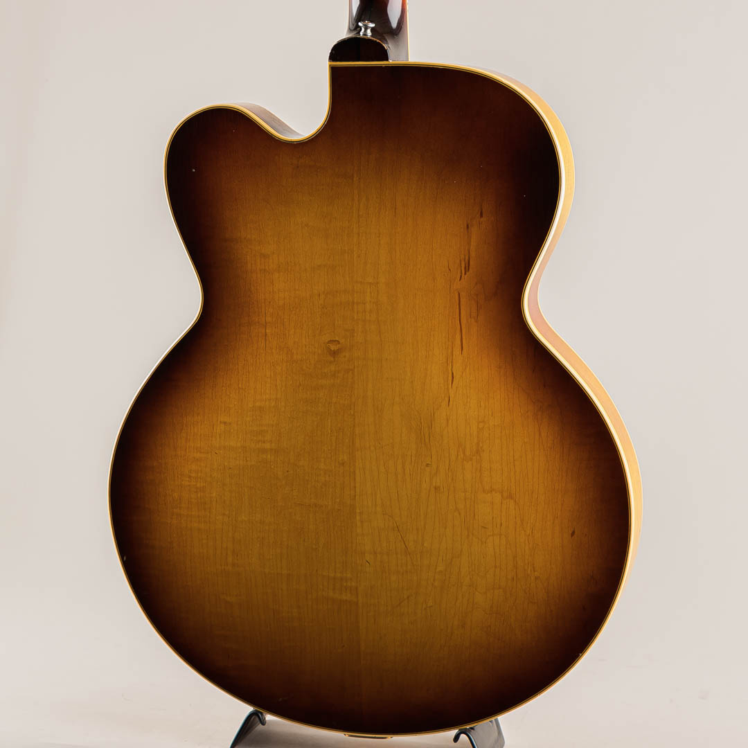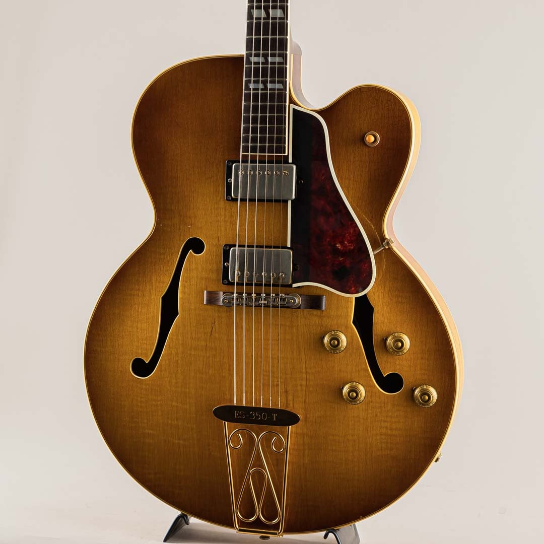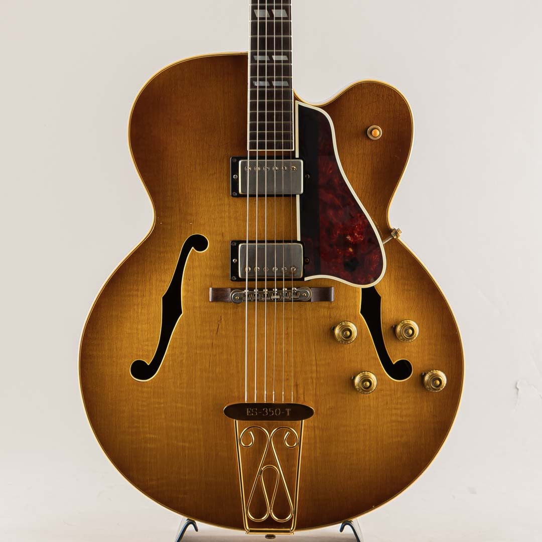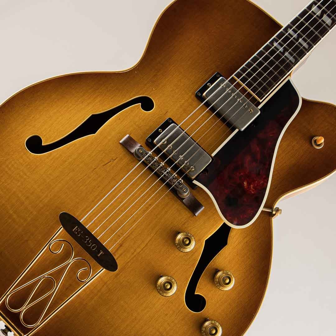 ESホロウボディモデルの中位器種として1947年にラインナップされた”ES-350”の後継機種として誕生したES-350T。1955年にシンボディ・ホロウモデルとしてデザイン変更され1963年まで製造され、シン・ボディモデルになった際にショートスケール&ナロウストリングピッチへと仕様変更。この度入荷致しましたのは、1958年製べネチアン・カッタウェイ期の1本。ウッドマテリアルはラミネイトメイプルボディ / 3ピースメイプルネック / ハカランダ指板にて構成。Byrdlandと同様のショートスケールネックで、ネット幅約42mmのやや小振なシェイプ感が特徴的。細やかなウェザーチェッキング、フェイドしたサンバーストカラーは渋い出立ちでございます。