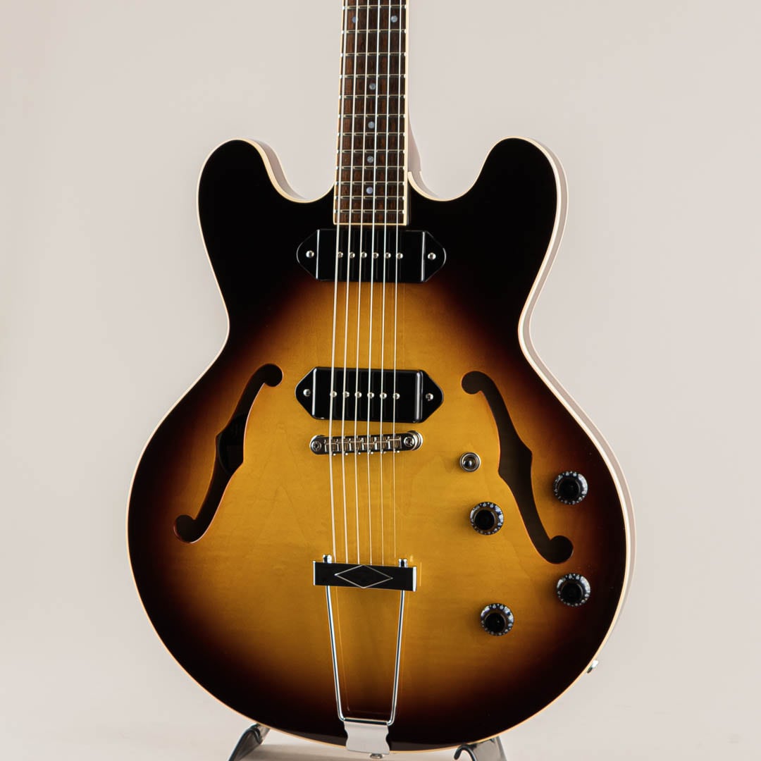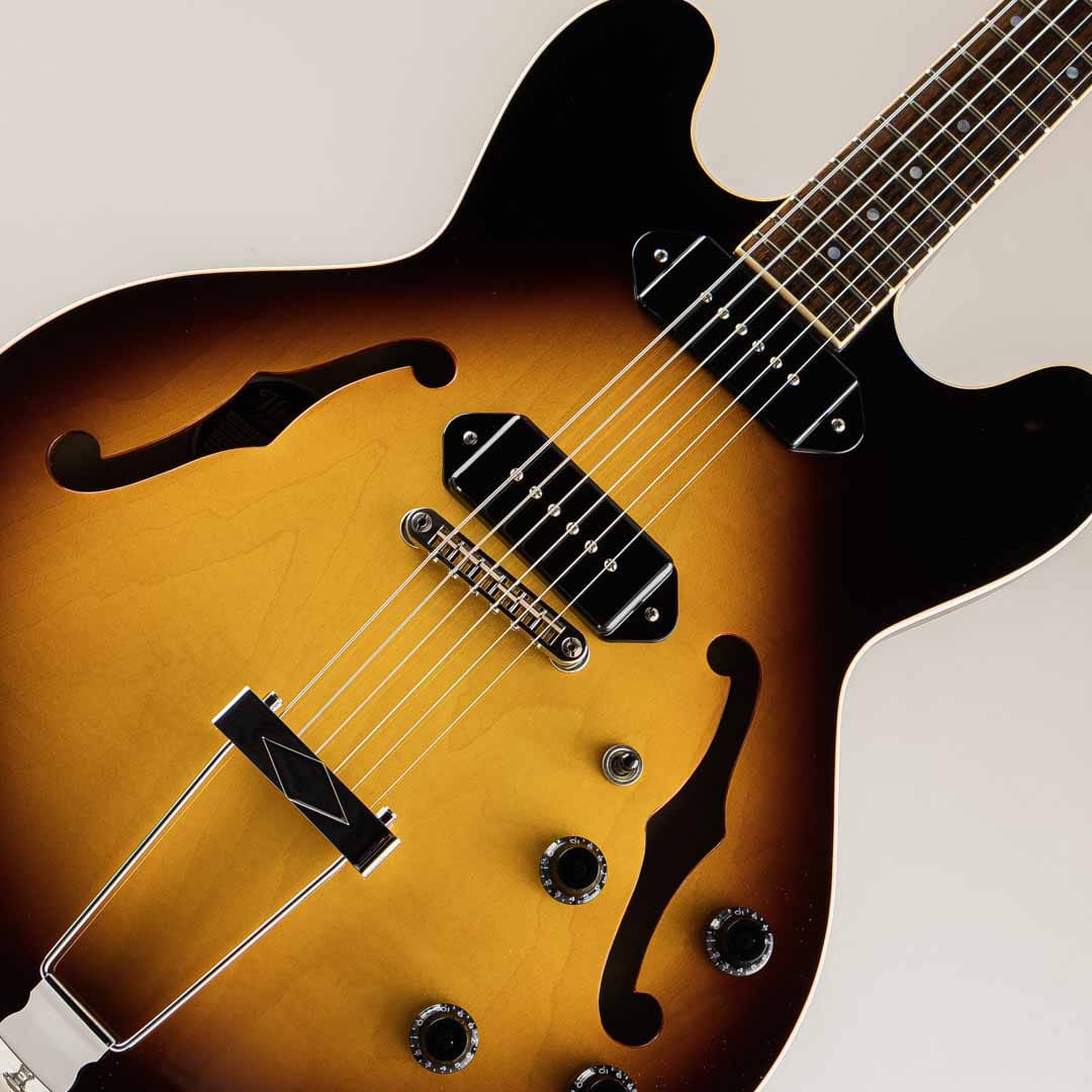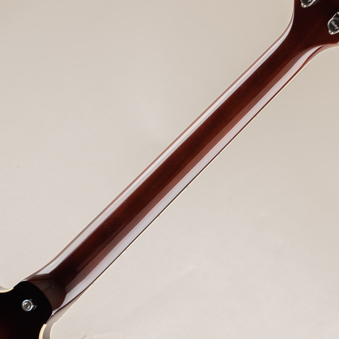 ボディサイドには単板のメイプル、マホガニーネック&ローズ指板のウッドスペック。ネックジョイントは60年代後期のGibson ES-330を彷彿とさせる19Fにて接着。カリッとした歯切れのある鳴りが魅力的でございます。ネックシェイプは丸みがありながらもフィット感の心地いいUシェイプを採用。ピックアップにはLollar製のP-90タイプを2機マウント。フロントピックアップの位置をやや低くすることにより、ブリッジ側とのバランスを保っており、Dogear独特のアンバランスさを解消。抜けの良いクリーンサウンドはドライブサウンドとの相性も良く、ジャズから泥臭いブルースまでお楽しみ頂けます。