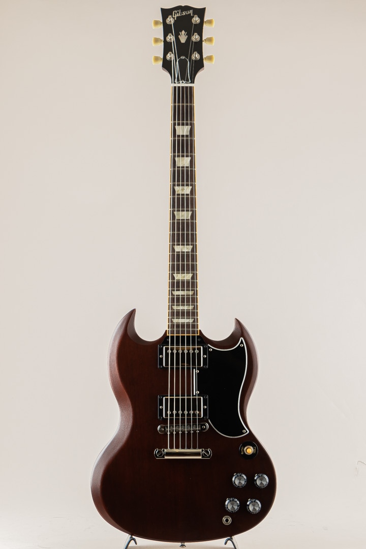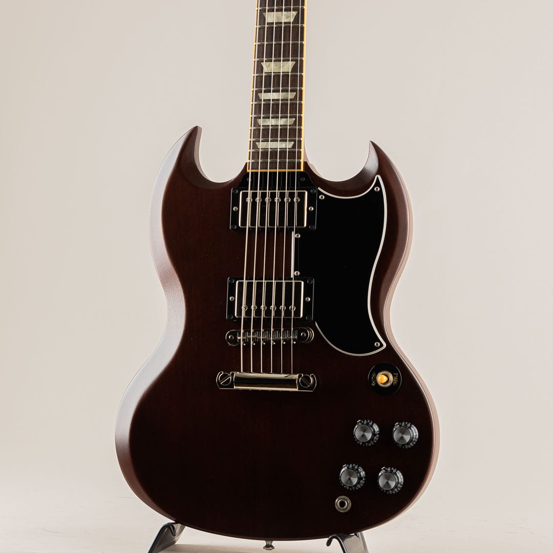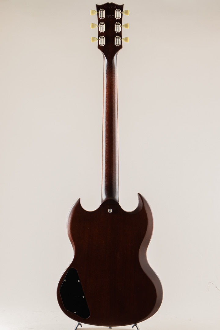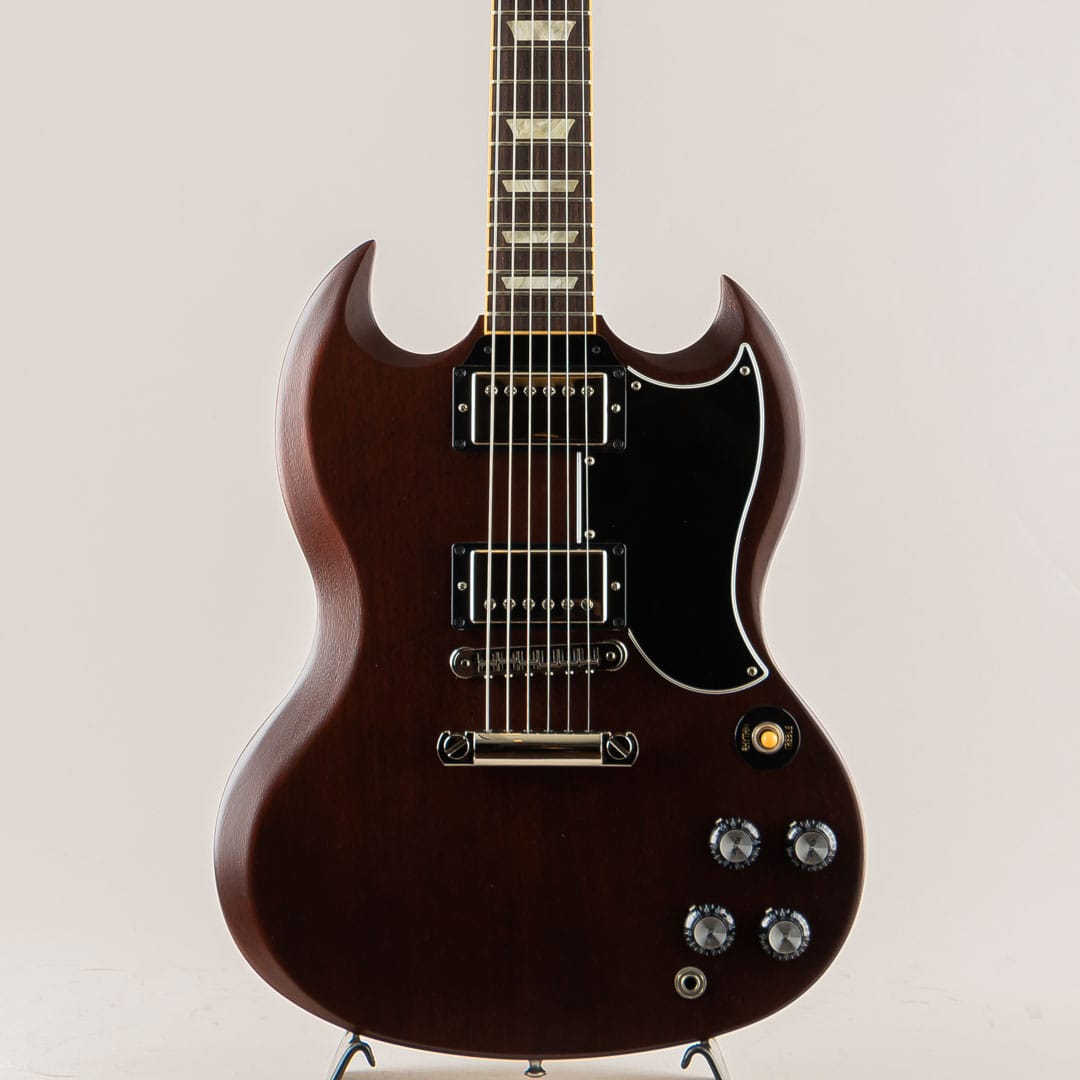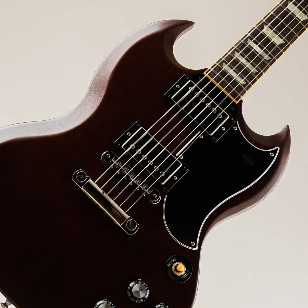 マホガニーボディ / マホガニーネック / ローズウッド指板にて構成されたウッドマテリアル。スモールピックガード / スリムネック仕様等、基本仕様はSG 61タイプと同様ながら、サテンフィニッシュにアンティーク・ウォルナットカラーがチョイスされた限定仕様となります。スリムなネックとサテンフィニッシュの組み合わせによって実現した滑らかなネックグリップ、ハイポジションへのアクセスが容易なダブルカッタウェイ構造により快適な演奏性が確保。ピックアップには57クラシックを2機搭載。SGらしい軽快で明快な響きはそのままに、色気のあるミッド感が堪らないサウンド。クリーンからドライブサウンドまで幅広くお楽しみた頂けること間違いなし。