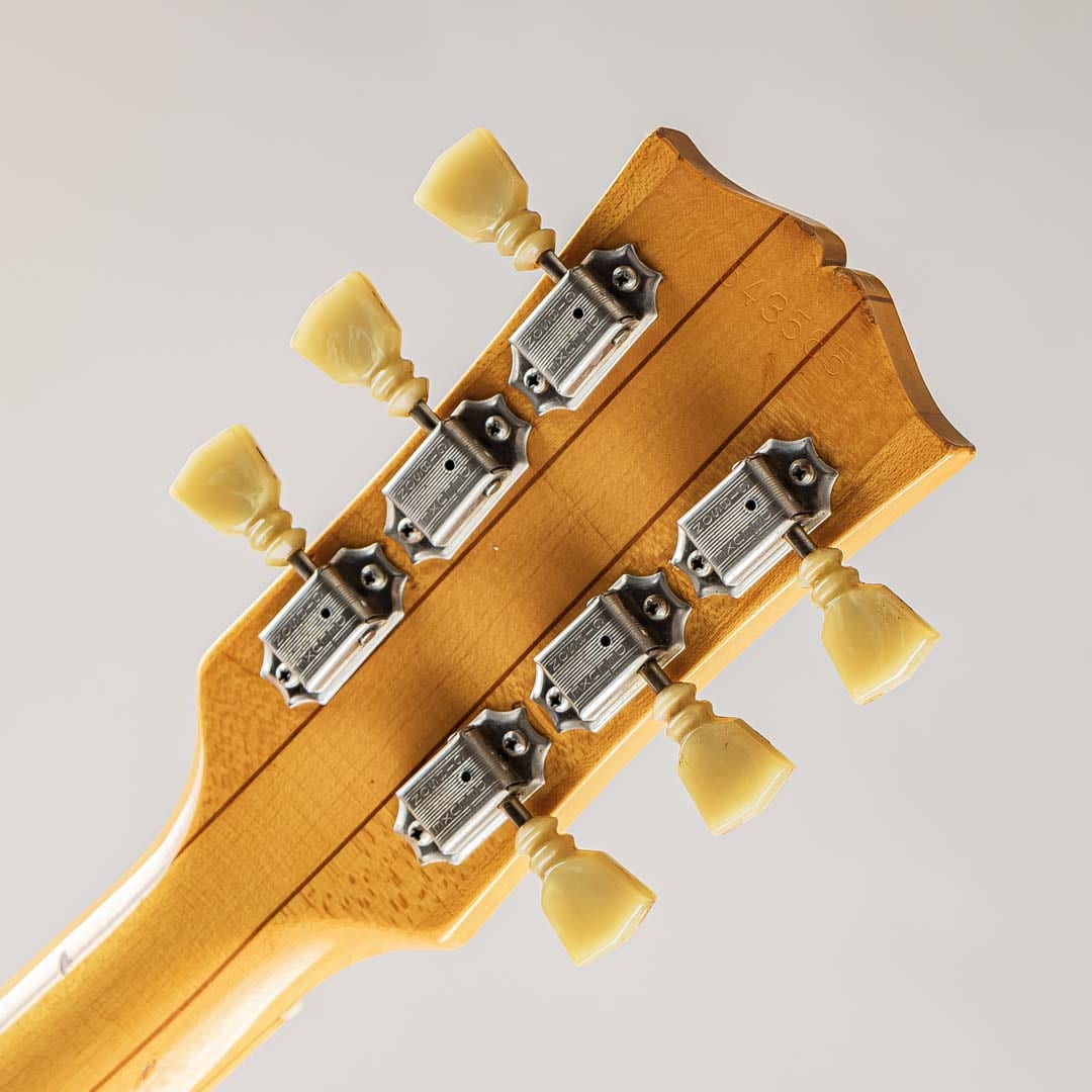 フレットとナットはリプレイスメント済となり、残量は5、6割ほど残されております。トラスロッドの効き幅は両方向ともに残されております。塗装面はオーバーラッカーが施された形跡がございます。日焼け等の影響により飴色の質感に加え、深めのウェザーチェックが発生しており、非常に渋い佇まい。ロッドカバー部分にザグリあとがございますが、ネック折れ等は見受けられません。ペグがGIBSON/KLUSON刻印入りのものへ交換されておりますが、その他はオリジナルを保っており、ヴィンテージ物らしい使用感はございますが、これからも活躍を見込めるコンディションでございます。