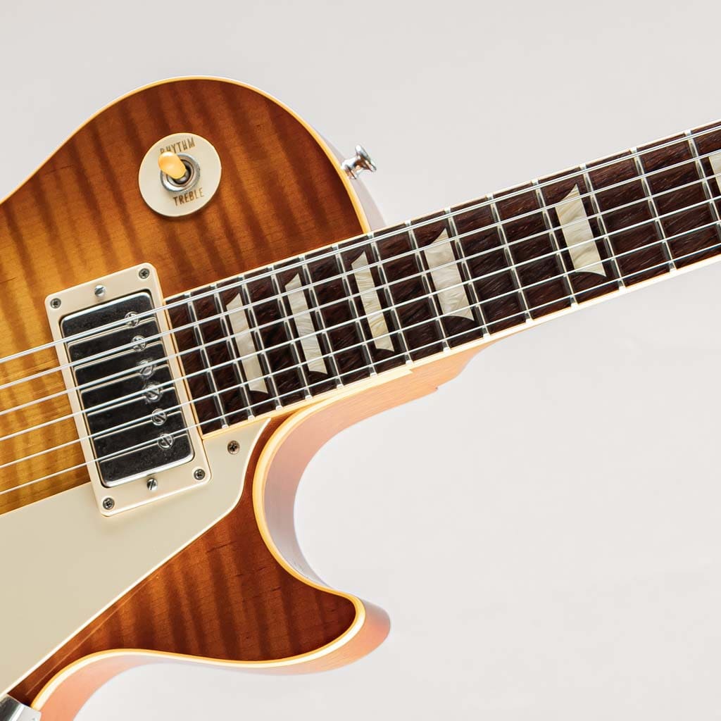1991年より発売が開始されたHistoric Collection Les Paul Reissue、その後1993年に正式に設立となるCustom Shopにおいて、その歩みと共に、あらゆる仕様/ディティールのアップデートを図り、完成度を極めてきた絶対的フラッグシップモデルですが、本機ではブラジリアンローズウッドを指板に採用した事により、未だ市場でも大変な人気を誇る2003年前期のみ製造の大変稀少な固体でございます。