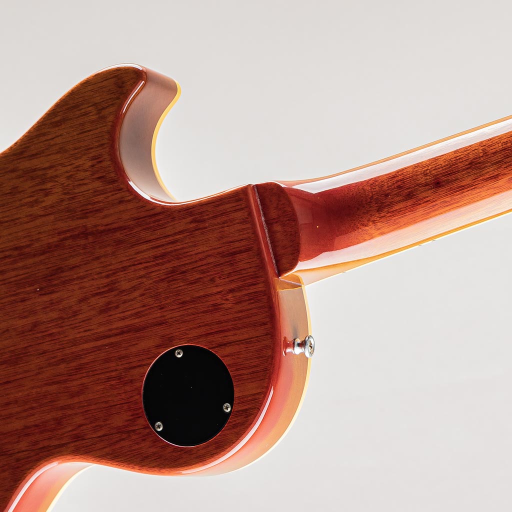 ウッドマテリアルは、フィギュアドメイプル / マホガニーバック / マホガニーネック / ブラジリアンローズウッド指板にて構成。黒々と艶やかながら、独特のうねりがある極上のブラジリアンローズウッド指板。見る角度によって大きな表情を変え、浮き出つようなフィギュアドトップとも相まって、オリジナルバーストを彷彿とさせる圧倒的な存在感は。弩級の迫力でございます。