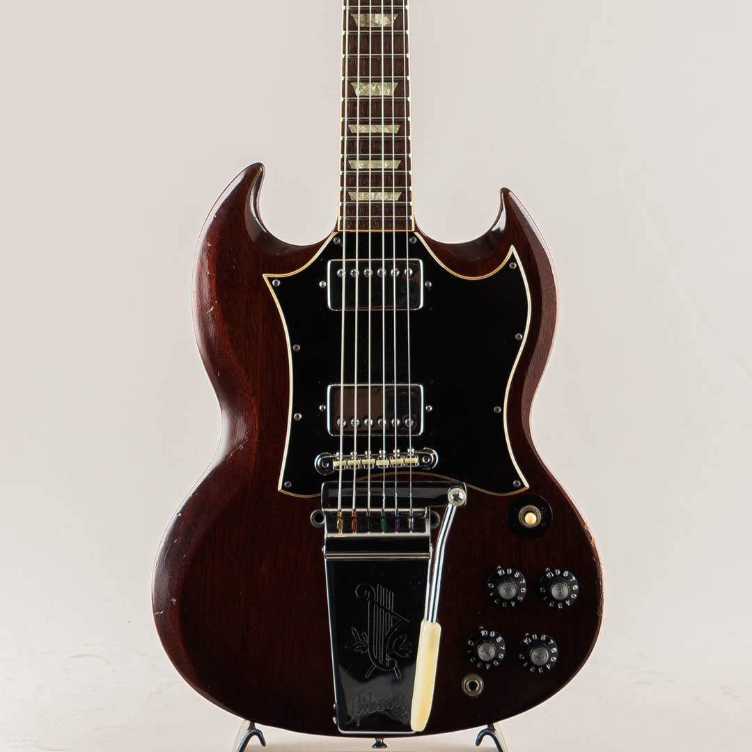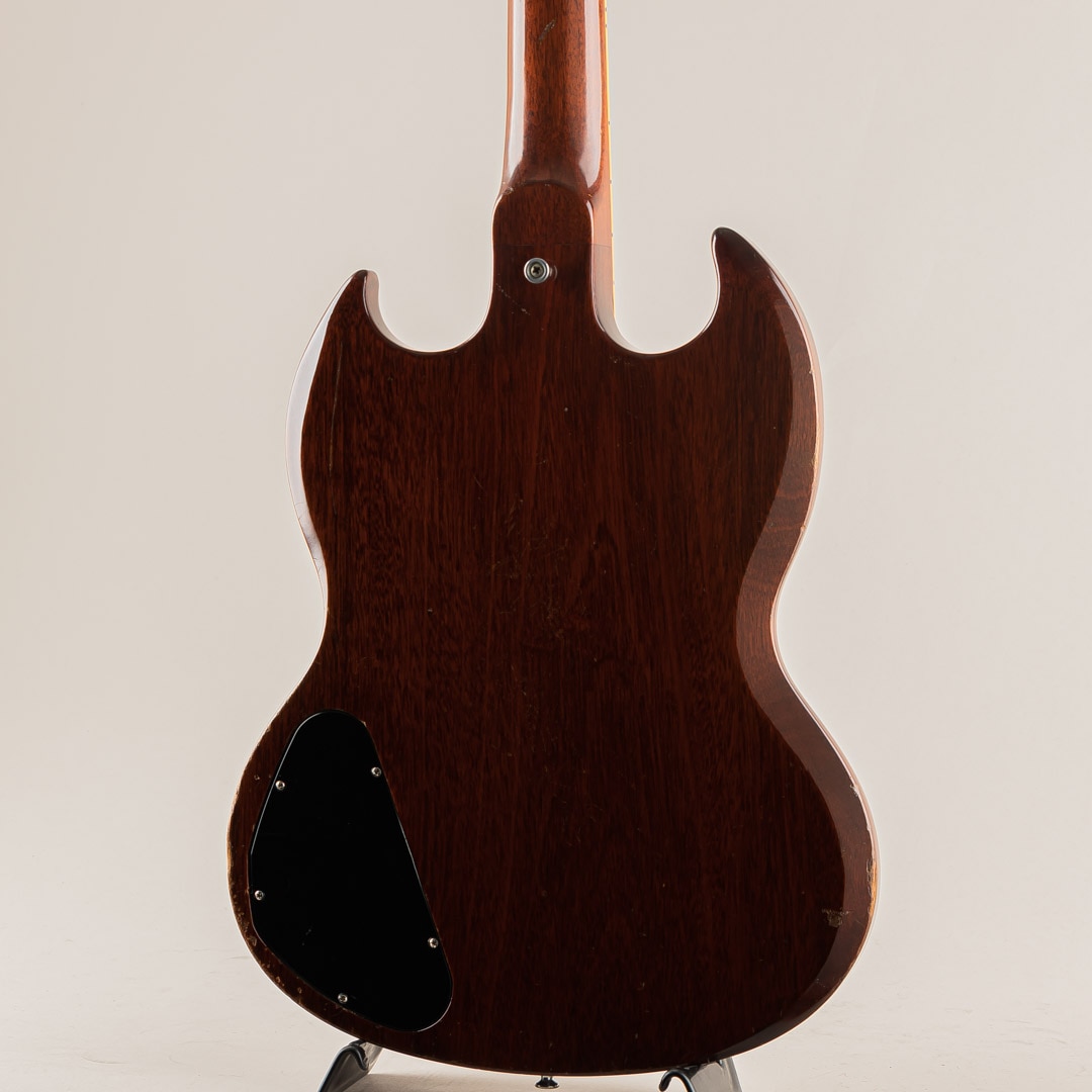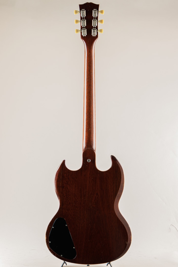 マホガニーボディ / ワンピース・マホガニーネック / ローズウッド指板にて構成されたウッドマテリアル。ややかくばったコンター加工、ラージピックガード、段差のないネックジョイント等、この年代らしいGibson過渡期のスペック面。ナット幅約39mmから成るネック、ローフレットからハイフレットにかけて厚みが増していくシェイプ感ながらも、手に吸い付くようなグリップ感は非常に心地よい握り心地。ピックアップは、オリジナルのステッカードナンバーPAFを2機搭載。一枚板のような音圧がありながらも、Gibsonらしい温かみを感じられ、それでいて適度なコンプレッション感のあるヴィンテージサウンドは、現行のSGモデルとは全く違うクオリティでございます。