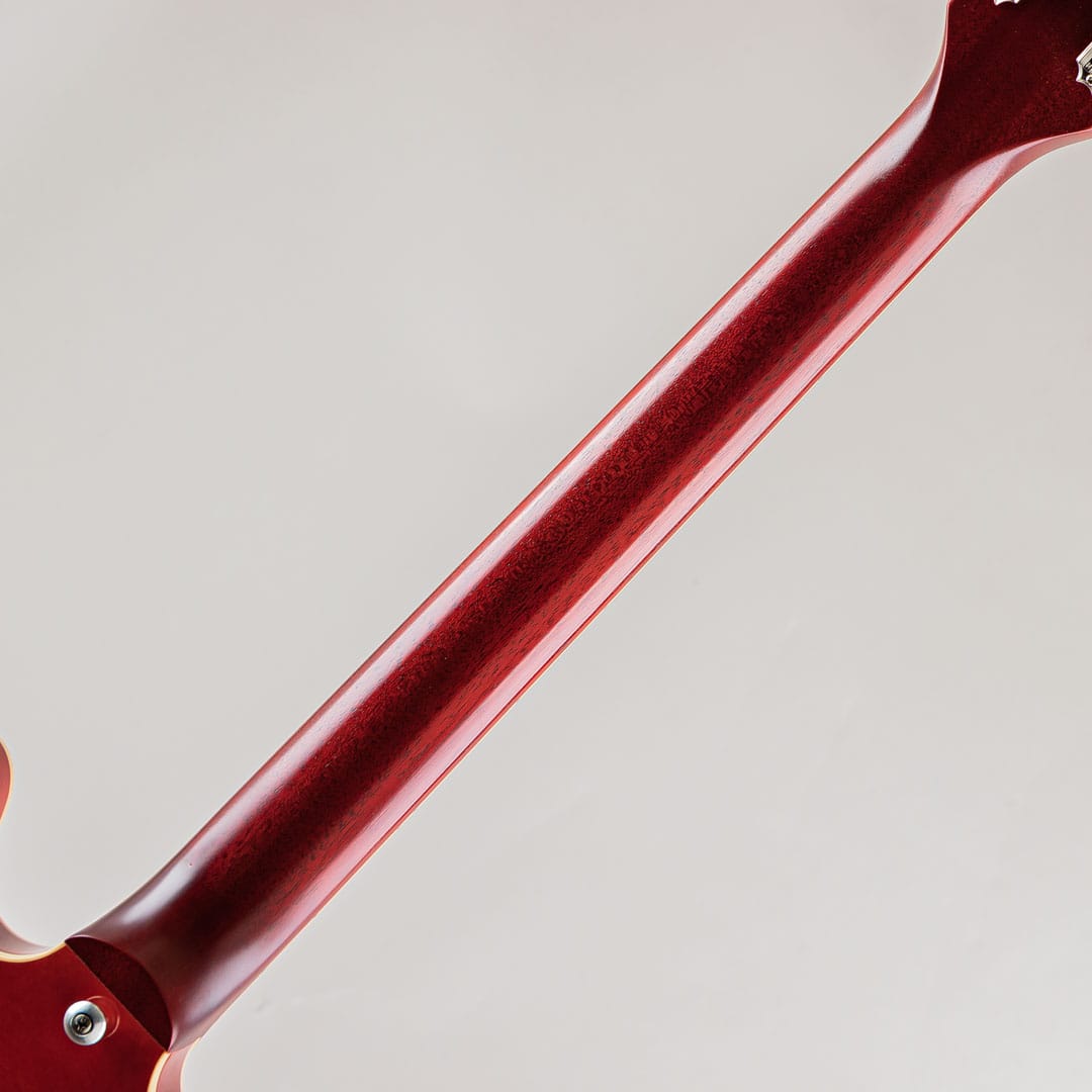 2021年製の本機。ボディの塗装部分は元々サテンフィニッシュでございましたが、元のチェリーカラーの上にグロスフィニッシュが後から施されており、ネックは元のサテンフィニッシュとなっております。塗装面にそうしたリフが施されているものの、細やかな布傷等を除けばあまり使用感を感じさせない美品コンディションでございます。フレット周りも良好で、凹凸等は見受けられず残量は8割ほど、ロッドの効き幅も十二分に残されておりますので、これからも活躍を期待できるネックコンディションでございます。オリジナルハードケース、中古保証6ヶ月が付属致します。