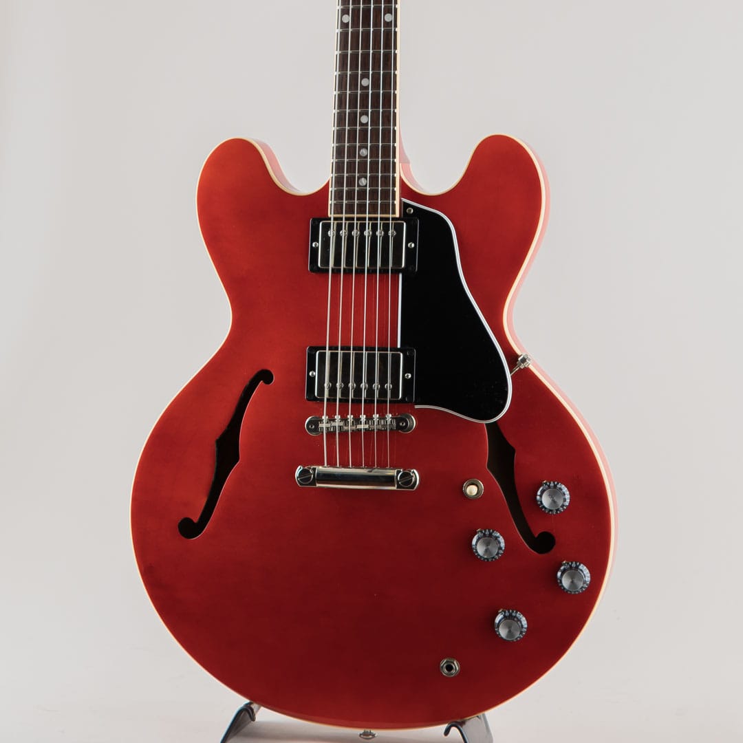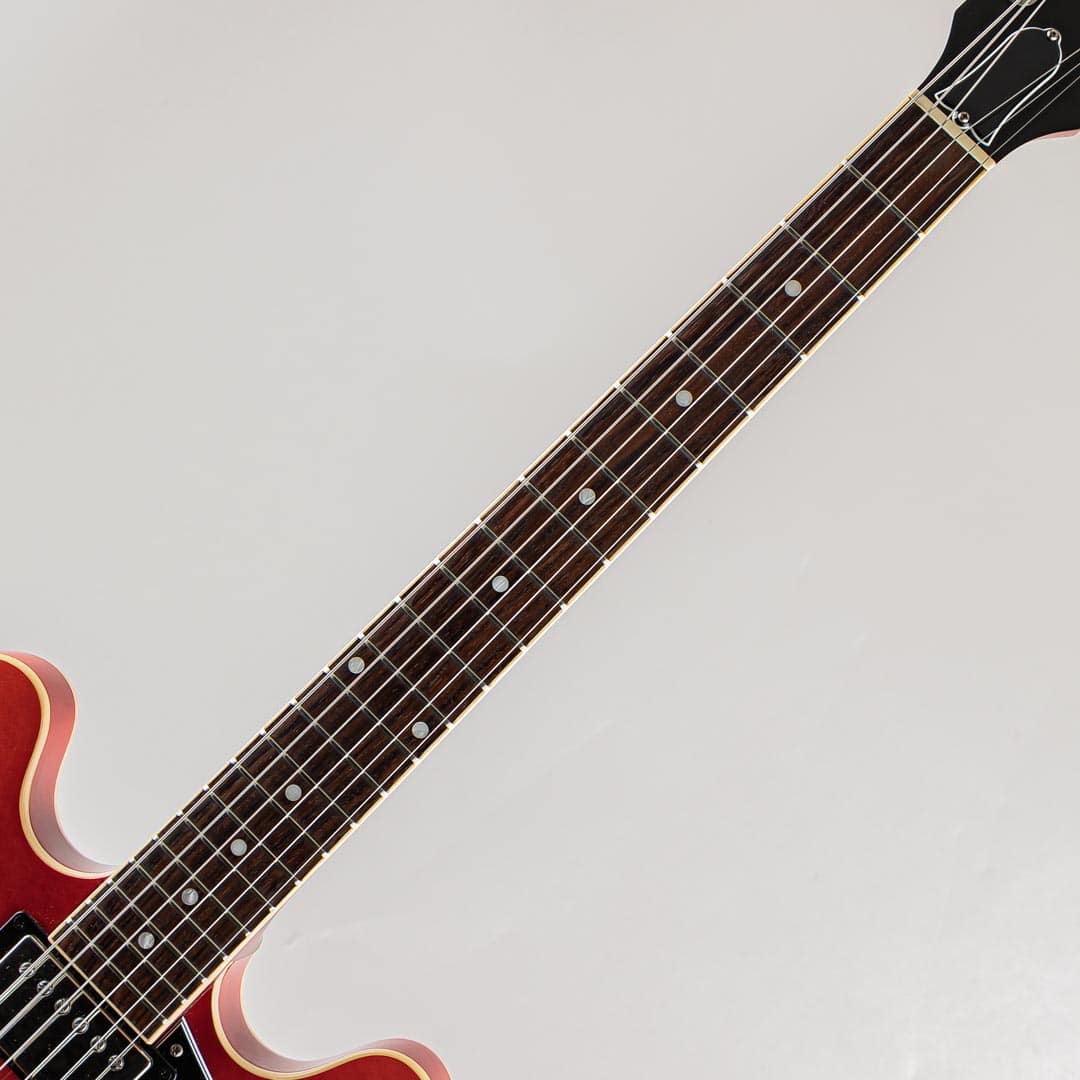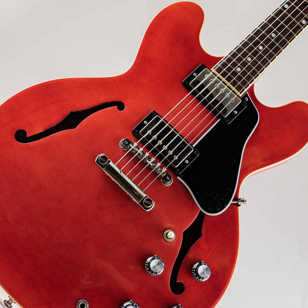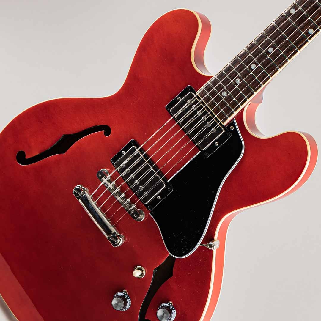 この度入荷致しましたのは2021年製のES-335 Satinでございます。ウッドマテリアルは、3層構造のラミネイトメイプルボディ / マホガニーネック / ローズウッド指板にて構成。ネックシェイプはハンド・ロールド処理により角が落とされ丸みを帯びたラウンド“C”シェイプとなります。エアー感を存分に感じられる鳴りと甘味のあるサウンドはセミアコならでは。ピックアップにはCalibrated T-Typeハムバッカーを搭載。明るめなサウンドキャラクターが特徴的で、少しクランチ程度に歪ませて、テンプレートとはなりますが、やはりブルースフレーズ等をプレイされるのも良いのではないでしょうか。