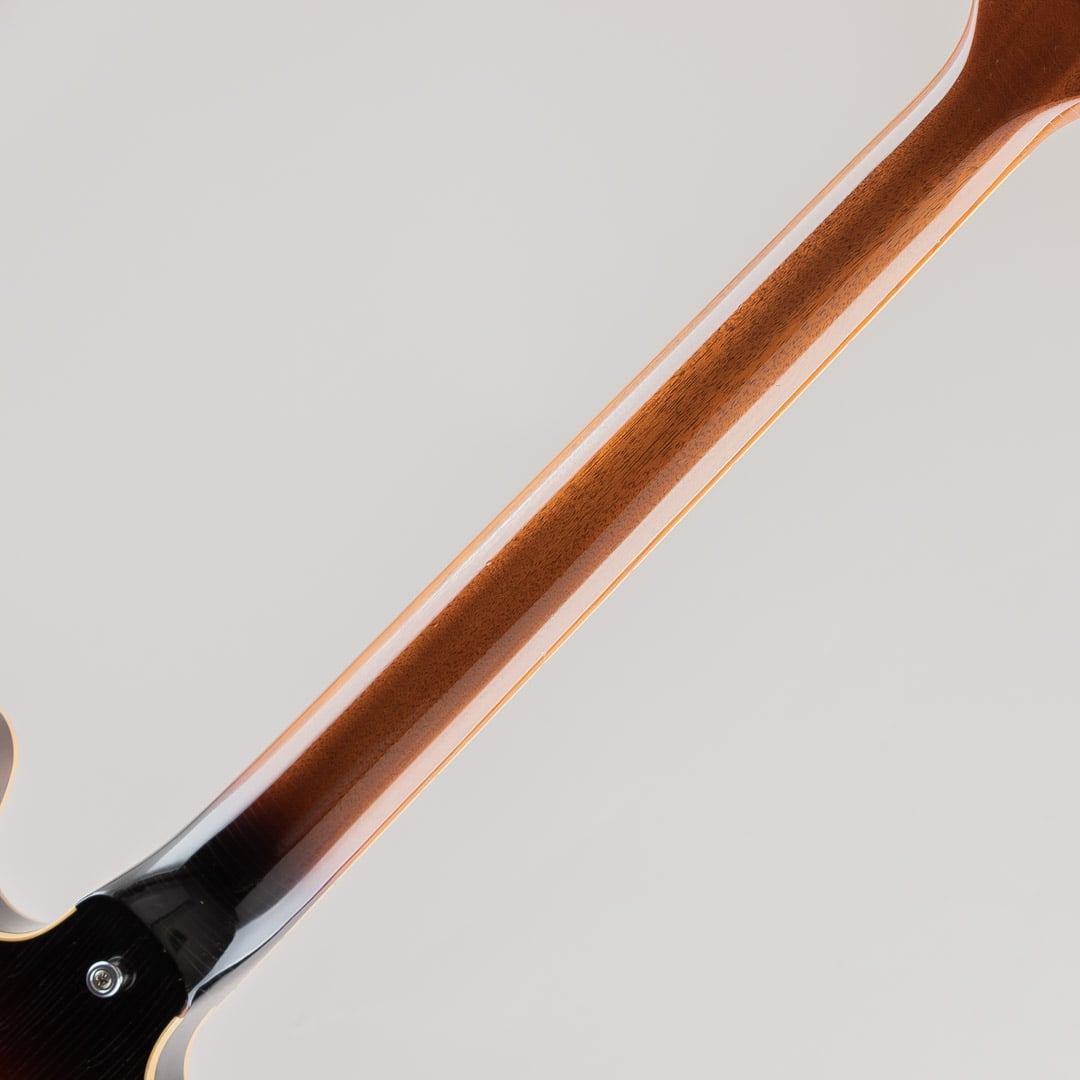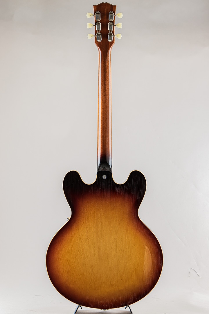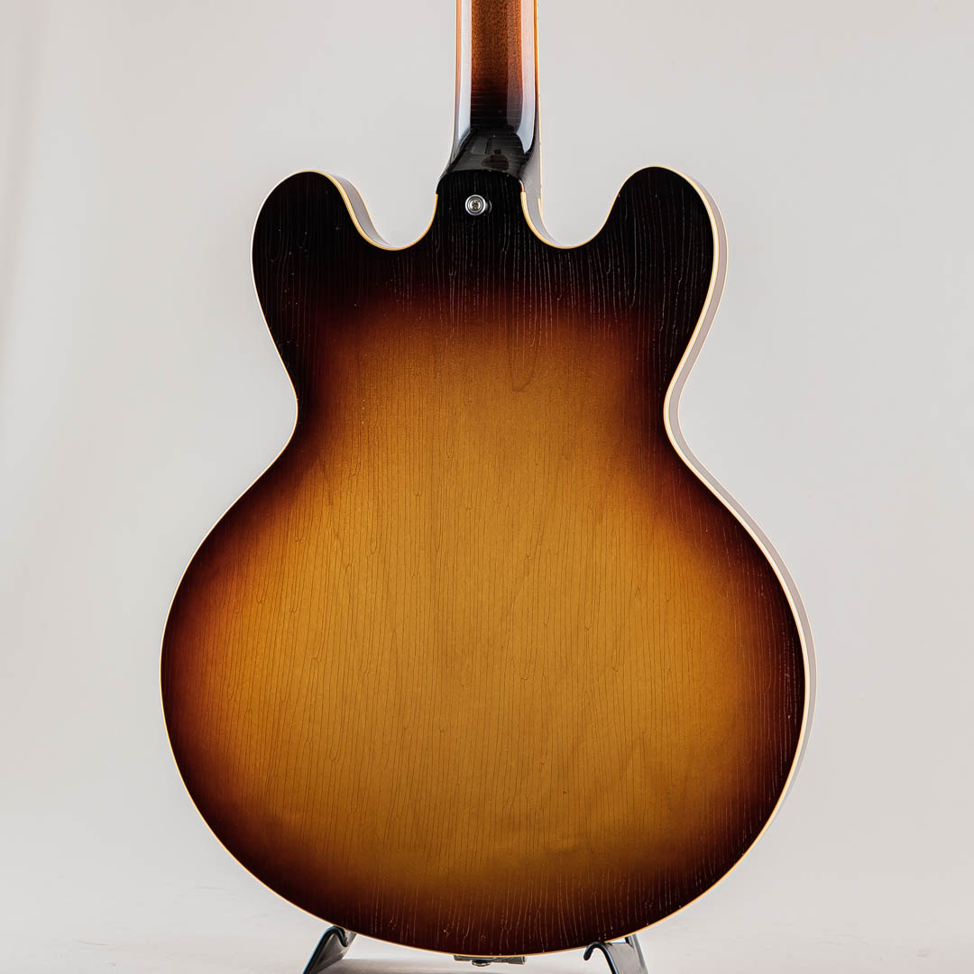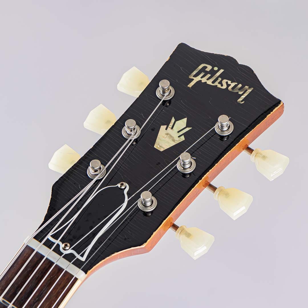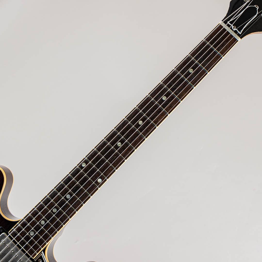 2017年製ナッシュビル・カスタムショップにて製作された1959 ES-335ビグスビー搭載型が中古にて入荷いたしました。ドット・インレイ / ソリッド・センターブロック / ロングピックガード / ミッキーマウスホーンといった、1959年仕様が再現されたスペック面。そして、本機のテイルピースをビグスビーB7にし、カスタム・メイド・プレートがを取り付けが特別に取り付けられた珍しい仕様となり、おそらくカスタムオーダーメイドの個体かと思われます。ウッドマテリアルは、ラミネイト・メイプルボディ / マホガニーネック / ローズウッド指板にて構成。フィニッシュは赤みを僅かに残したフェイドしたサンバーストと、Lightly Agedのコントラストはマッチしており、ビグスビーやカスタムプレートと相まって、非常にかっこいいルックスで、ロックンロールのような印象がある出立ちでございます。ネックシェイプはやや厚みがありながらも、吸い付くようなグリップ感が特徴的な59 Round。