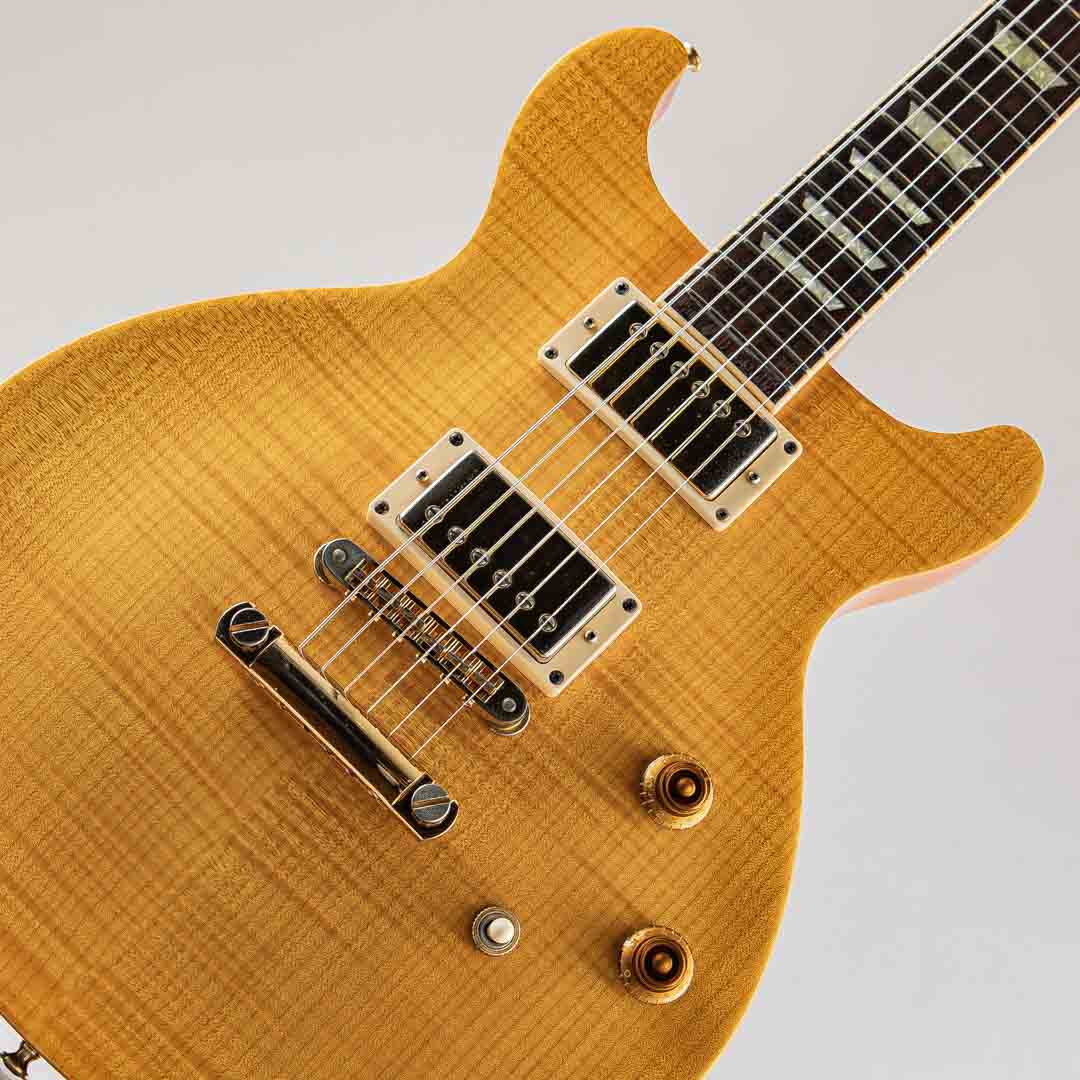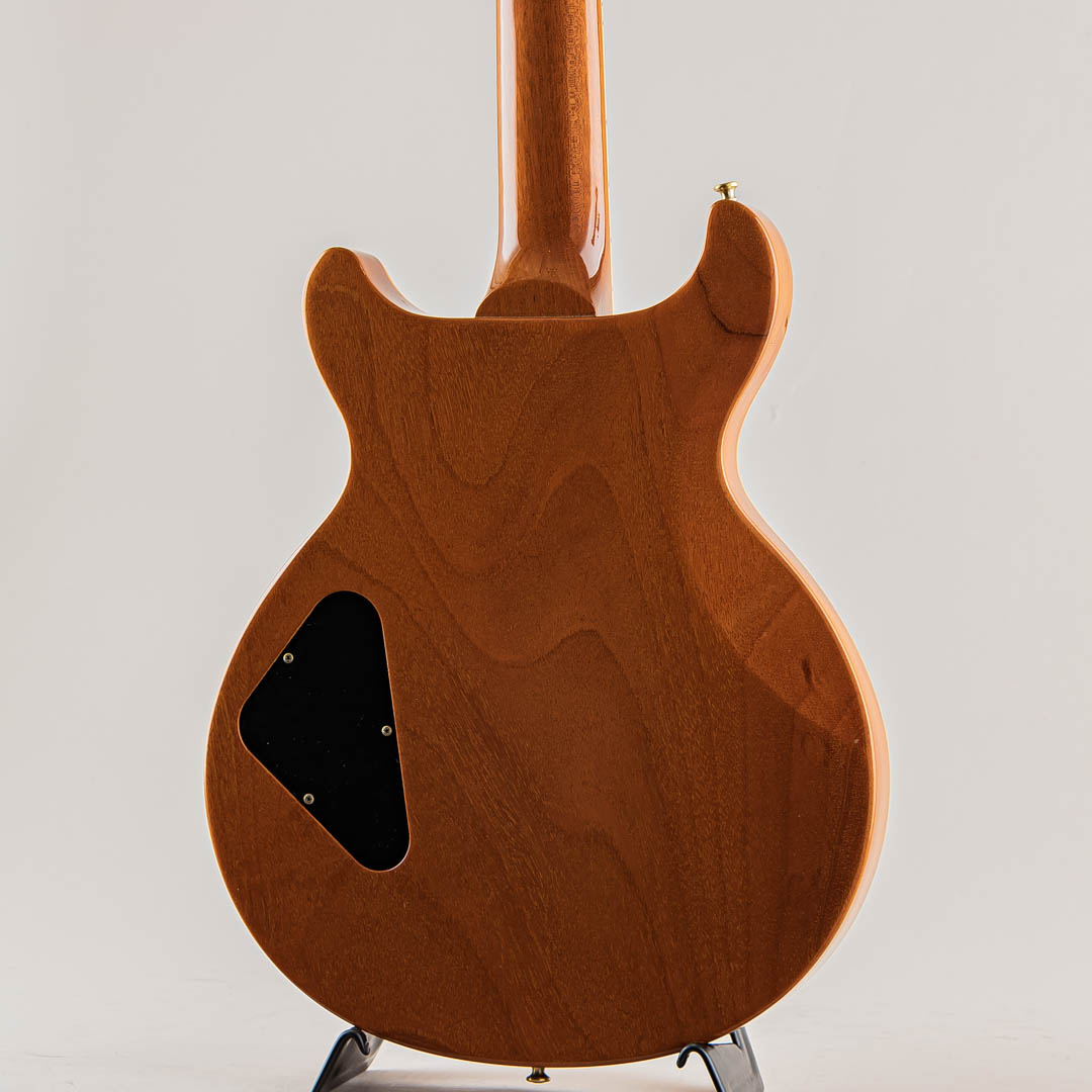 ウッドマテリアルは、AAAフィギュアドメイプル / マホガニーバック / マホガニーネック / ローズウッド指板にて構成。ネックシェイプは薄めの60sスリム・テーパーシェイプとなっております。通常のスタンダードとは違い、ダブルカッタウェイ構造や24F仕様となり、ハイポジションへの演奏性とプレイの幅が広げられたつつも、ボディバックのコンター加工とチェンバードボディ構造故の軽量な取り回しと、快適なプレイビリティが確保されているのが特徴的でございます。ピックアップには490R&498Tを搭載。レンジ感が広くあり、クリアなクリーントーンから、力強くハードなドライブサンドまで、様々なサウンドメイクにも対応してくれる幅の広い表現をアウトプットしてくれます。