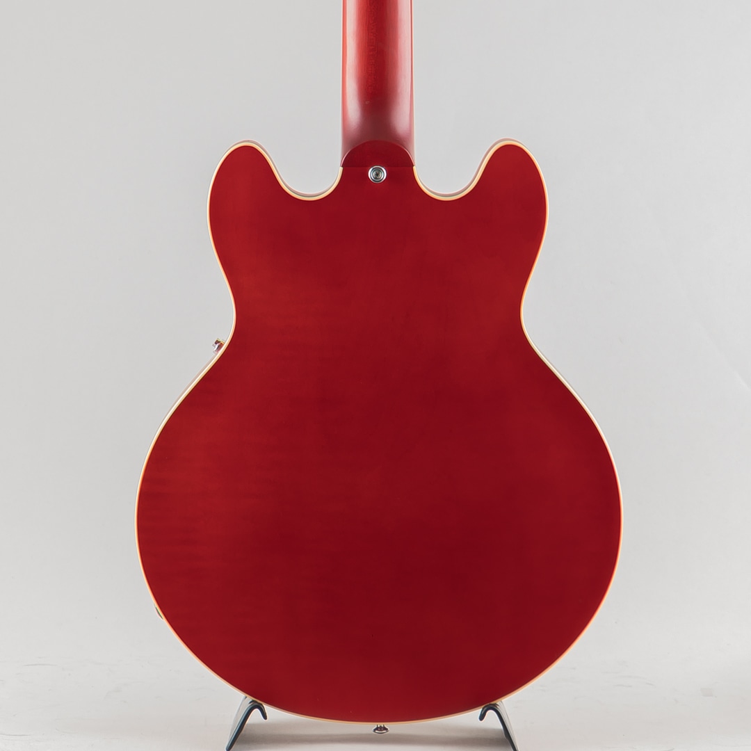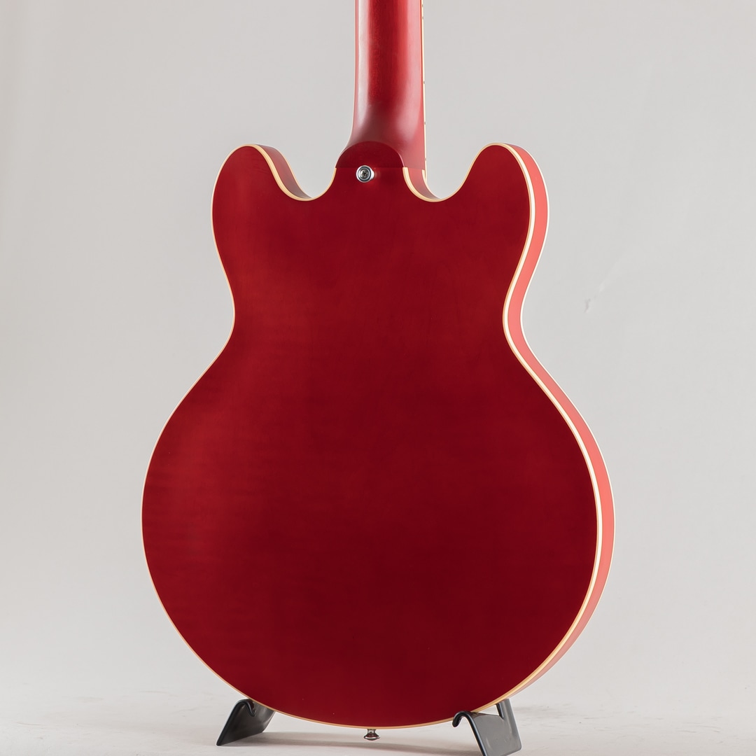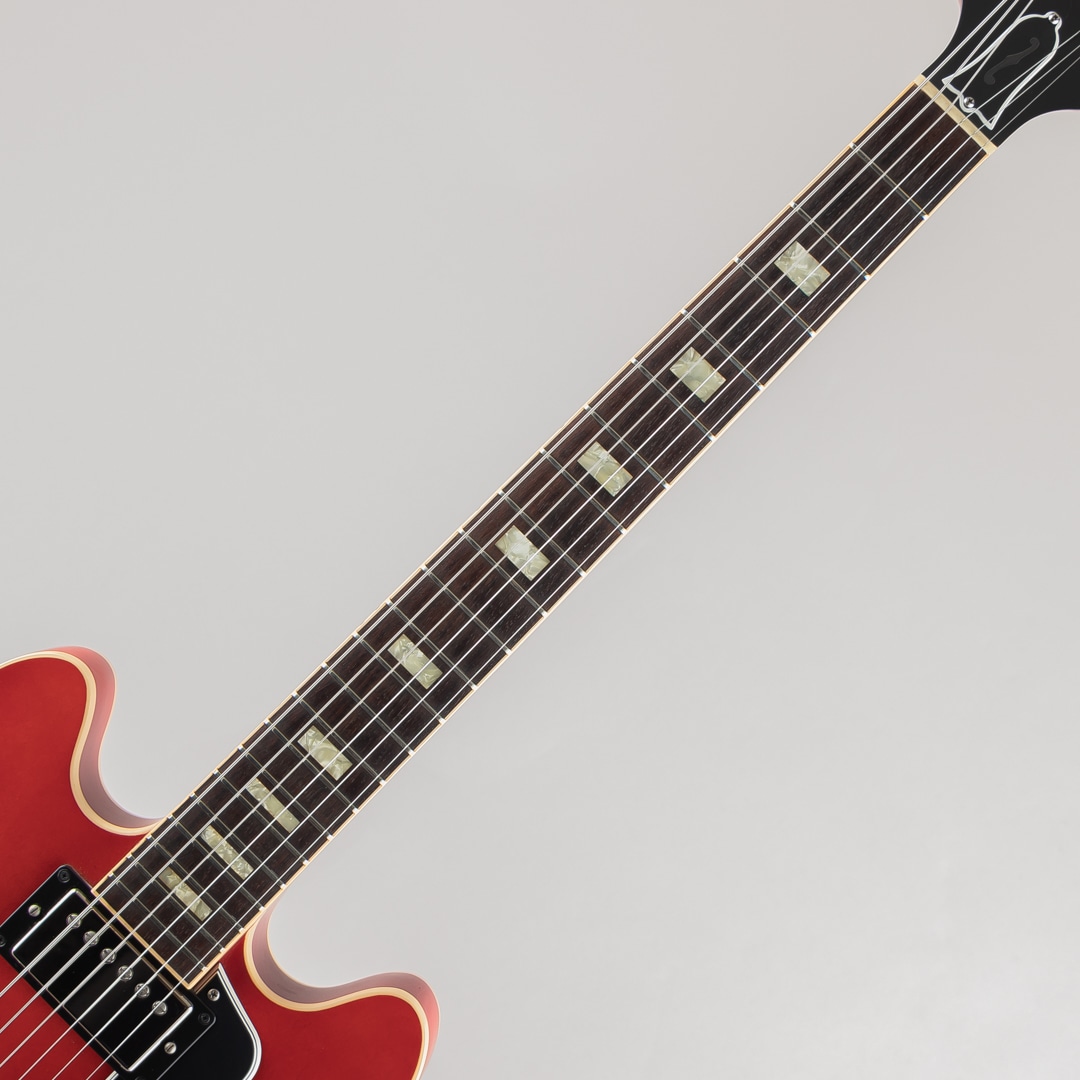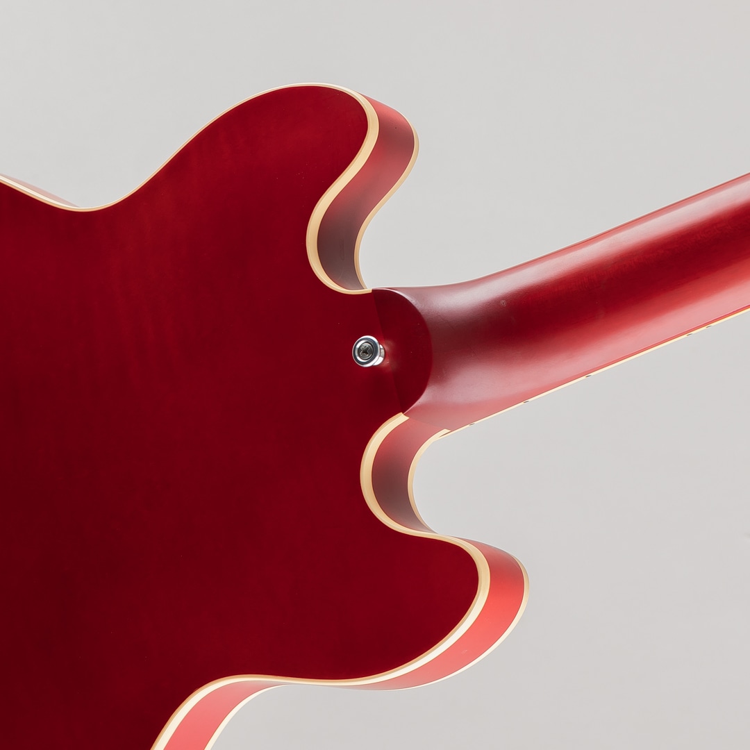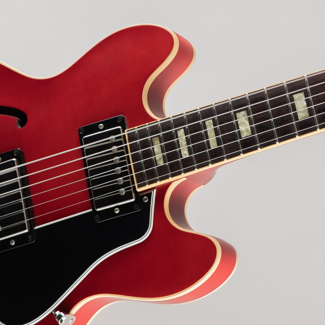 ウッドマテリアルは、ラミネイトメイプルボディ / マホガニーネック / ローズウッド指板にて構成。ネック形状はスリムなタイプとなり、約43mmほどのネック幅となります。ESシリーズと言いますと、335モデルが代表的ではございますが、本機は同じセミホロウモデルながら、小ぶりなボディサイズが特徴的でございます。335よりもボディサイズを小さくしたことにより、箱鳴り感がありつつもソリッドさが増した印象の"鳴り"。ピックアップはBurstbucker 1&2を搭載、荒々しくも太いセミアコサウンドをアウトプット、ドライブサウンドもグッドです。