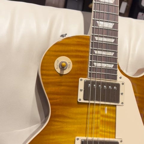Gibson USAのフラッグシップモデル Les Paul Standard。この度入荷いたしましたのは、US市場限定にて展開されていたモデルとなり、トップにAAAグレードのフィギュアドメイプルを、カラーには何処となくカスタムショップにて展開されているDiry Lemonに近い印象を感じるHoney Lemon Burstを採用した特別な1本。USカタログモデルと同様にウェイトリリーフが施されていないマホガニーバック。マホガニーネック&ローズ指板のウッドマテリアル。ネックシェイプには50s系プロファイルよりもやや薄くテクニカルなフレーズを演奏しやすいスリム・テーパーグリップを採用、滑らかに処理された指板サイドエッジやミディアムジャンボフレットも合わさりさらに演奏性を向上。