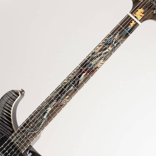 PRS(ポールリードスミス)全世界135本、国内入荷10本のみの35周年記念ドラゴン入荷のご案内です!! Paul Reed Smith Dragonシリーズは、数あるモデルの中で最も切望されているモデルの一つです。 PRS社の35周年を記念して、この歴史的なモデルを祝福することを誇りに思っています。 本モデルの幻想的なドラゴンのビジュアルは、「Dungeons & Dragons」のカバーアートを手がけるJeff Easley氏による物です。 PRS社はAulson Inlay(オルソン・インレイ)と手を組み、Jeff Easley氏が手掛けたドラゴンのアートワークを分解し、ギターのフレットボード用にデザインを起こしました。 ドラゴンのデザインは、フレットボードを超え、ドラゴンズブレスがトラストラスロッドカバーにまでかかる大作となっております。 沢山のマテリアルから作られたドラゴンインレイは?Green Ripple Abalone Select, Black Mother of Pearl,Stabilized Sand-Shaded Holly, Red with Gold Vein Recon Stone,Raffir Strioed Black,Black and Red Raffir Auminum Wave,Abaloid Acrylic, Nocturne Corian,Citrine,Flame Synthetic Opal 等から構成さ れます。 35th Anniversary Dragonは、バックがやや厚く、PRSストップテイル・ブリッジ、ボリューム、プッシュ/プル・トーン、3ウェイ・トグル・スイッチを装備したPRS McCartyモデルをベースとし、Paul's GuitarのTCIピックアップとPhase IIIロッキング・チューナー を採用し、ビンテージとモダンのパランスが取れたスペックとなっています。 最高級 Private Stockグレードのトーンウッドを手作業でセレクトし、トップにはCurly Maple、 バックにはAfrican Ribbon Mahogany、ネックはChaltecoco(シャルテココ)の 25"スケールPatternネック、22フレット指板にはZiricoteを使用しています。 フィニッシュはFrostbite Dragon's Breathを採用しています。 このフィニッシュは、ボディ下部へ向けてカラートーンが明るくなっていく(別名グロ ー)ことで、ドラゴンの口から放たれる炎を表現し、今回の35th Anniversary Dragon に最適なものとなっています。 スモークブラックで仕上げたハードウェアが、このギターの激しさと優雅な ムードを醸し出しています。 35周年プライベートストックドラゴンは全世界135本限定となります。 状態と致しましては、ボディーバックに極僅かな打ち傷が見られますが、 その他を除けば使用感の少ないコレクターズコンディションを保っております。 大変希少な1本如何でしょうか。 *オリジナルハードケース、認定書、保証書付属 Private Stock # 8843 Serial Number: 20-301082 Specifications: Model: Dragon 2020 Neck wood: Chaltecoco Fingerboard wood: Ziricote Top wood: Curly Maple Back wood: African Ribbon Mahogany HeadstockVeneer wood: Ziricote Neck Carve: Pattern Side Dols: Mother of Pearl Color/ Stain: Frostbite Dragon's Breath Fingerboard inlays: 35th Anniversary Dragon Headstock veneer inlays: Abaloid/ Black Raffir Private Stock Eagle with Ripple Abalone outline Finish type: High Gloss Nitro Piekups: Treble: TCI Bass: TCI Electronics: One volume, one pushlpull tone with a 3-way toggle Hardware: Smoked Black PRS Stoptail bridge, PRS Phase III set-screw locking tuning pegs with Ziricote buttons, and a Ziricote truss rod cover Set-Up: D'Addario.010 Weight: 3.495kg Case type: Private Stock Black Paisley with 35th Anniversary PS logo Specials: High Gloss Nitro Frostbite Dragon's Breath finish, 35th Anniversary Dragon consisting of Green Ripple Abalone, Green Abalone Select, Black Mother of Pearl, Stabilized Sand Shaded Holly, Red with Gold Vein recon stone, Raffir Stripes Black, Black and Red Raffir Aluminum Wave, Abaloid Acrylic, Nocturne Corian, as well as Blue Pacific, Citrine, and Flame Synthetic Opal, Smoked Black hardware, TCI pickups, and a Ziricote Dragon Flame truss rod cover.