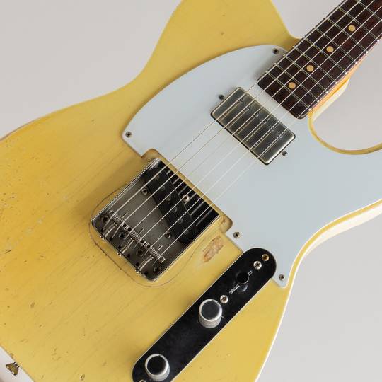 今回入荷はなんとコンバージョンスペック。ネックはスラブ期の60年スタイルネック、ボディはアッシュボディの52年スタイル。5点止めのホワイトピックガードにNachoオリジナルのPAFハムバッカーをマウント。60年初期のハードウェアとリアピックアップを再現。コントロールは使いやすいカレント配線となり、ブリッジサドルもスレッデッドのスチール製サドルを採用。ピックアップの直流抵抗値も近似値にて設計されており、ハムバッカーとシングルコイルのピックアップ切替時の出力差がありません。指板エッジの面取りやそれに絡む塗装チェッキング、見た目だけではなく手触りまで再現されたレベルのRelic、ヴィンテージと見まがう圧巻の風貌が見事に再現されております。そのサウンドは心地よく枯れており、艶やかかつ瑞々しい絶妙な色気のある広域レンジは正統派ヴィンテージサウンド。期待通りのクリスピーさに反応の良いスピード感があり、荒々しいビンテージさながらの芯の太さを持っています。力強いコードワークには期待通りの図太い音圧感を感じさせてくれますが、フロントピックアップはハムバッカーとは思えない乾いたトーンを出力します。
