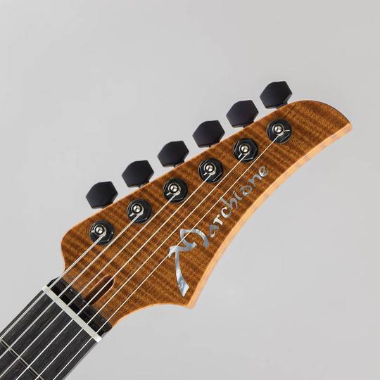 そして今回の入荷のNeck-Throughモデルは、ネック部分にウイングを取り付けたかのような複雑な構造となりながらも、まるで一本の木から製作されたかのような滑らかさ、そこに加えてネックヒールが滑らかな曲線を描くことにより、ハイポジションにおいて全くストレスを感じさせない演奏性はまさに驚愕の一言であり、Marchioneのソリッドギターをご存知の方であればより衝撃を受けて頂けるかと存じます。
