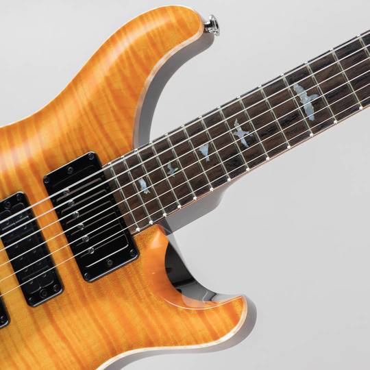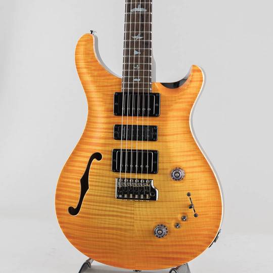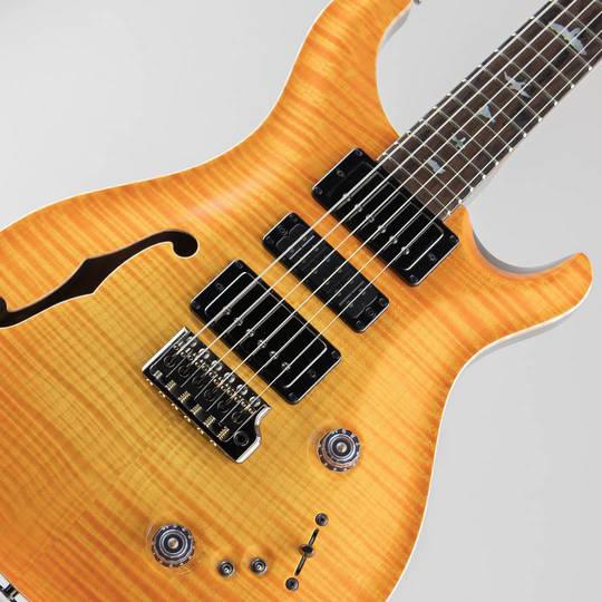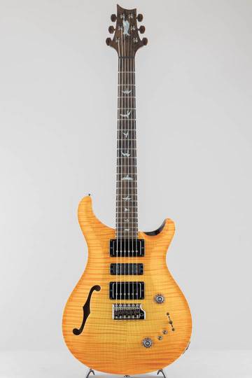 2021年に再登場したSpecial Semi-Hollowの基本スペック(22フレット、25インチスケールネック、シ ングルFホール搭載セミホローボディ、ナローフィールドハムバッカーピックアップ)はそのままに、 Private Stock Vaultから厳選されたHighly-Figured Mapleをトップ材、Black Limbaをバック材とネッ ク材、指板・トラスロッドカバー・ヘッドの突板にはZiricoteをそれぞれ採用。White Mother Of Pearl とPauaを組み合わせたインレイ、Smoked Black ハードウェア、Citrus Glow High-Gloss Nitroフィ ニッシュで仕上げられた今回のSpecial Semi-Hollowは、PRS Private Stockチームが手掛けるLimited Editionの名に相応しい仕上がりとなっています。
