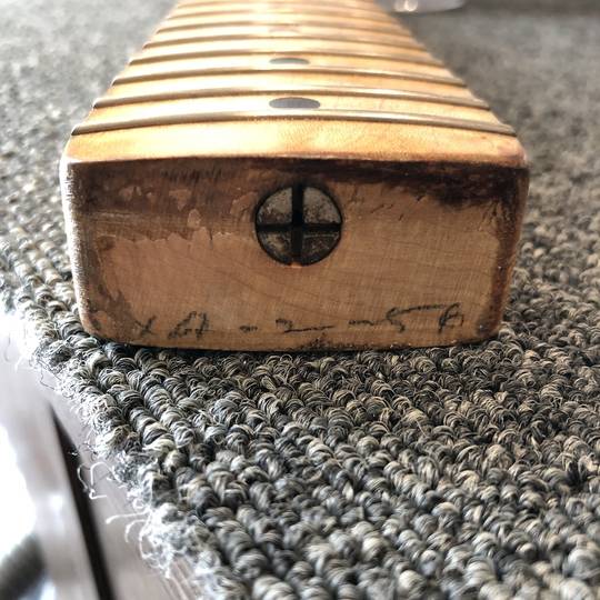 フレットに目立った凹凸はなく、トラスロッドの締め幅に余裕がございますのでこれからも末永くお使いいただけます。