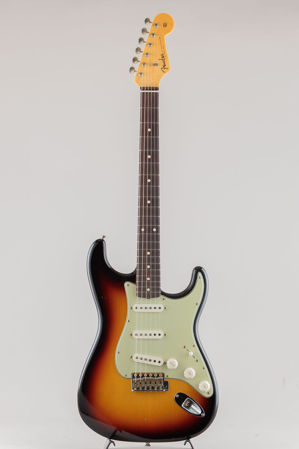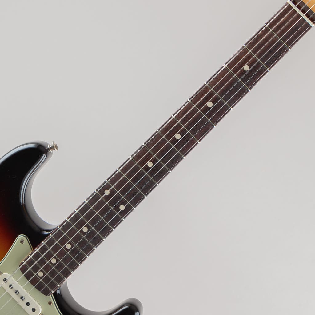 こちらはストラトの長い歴史の中でも特に人気の高い、薄めのネックシェイプにスラブローズ指板が特徴の60年仕様を採用した一本、ストラトキャスター定番カラーの3-Tone Sunburstにミントグリーンのピックガードが映える最高にクールな仕上がりとなっております。