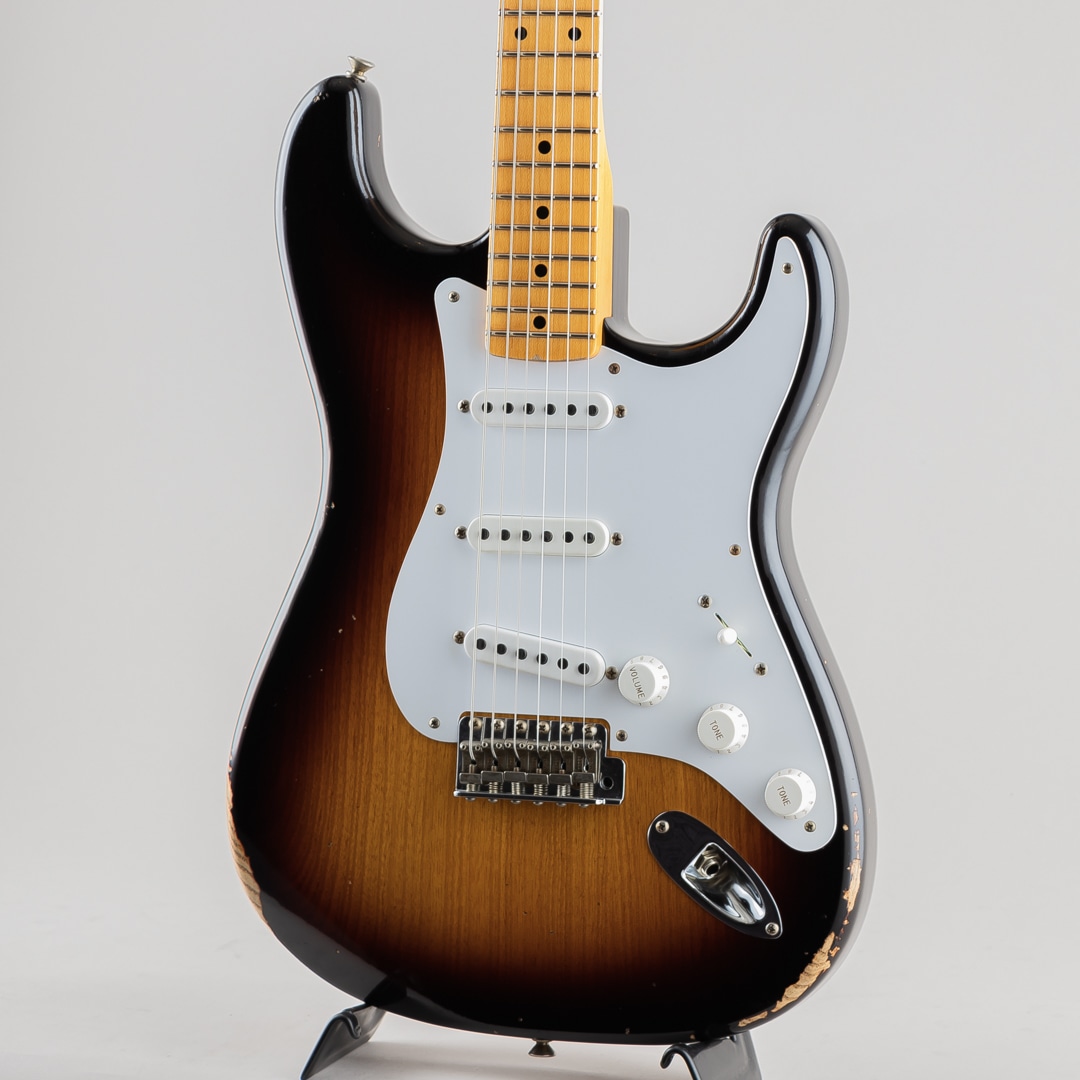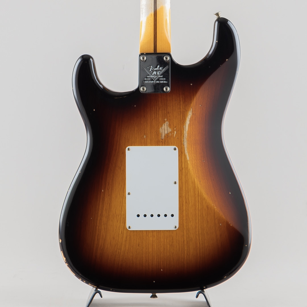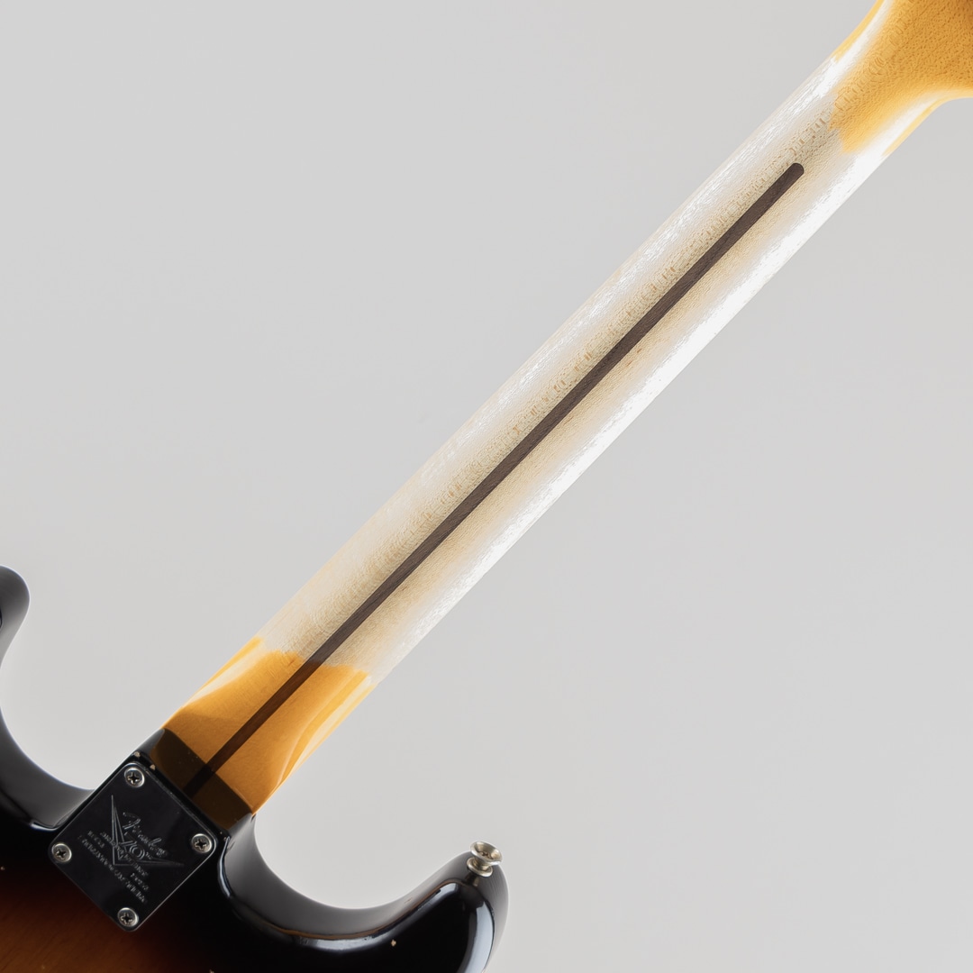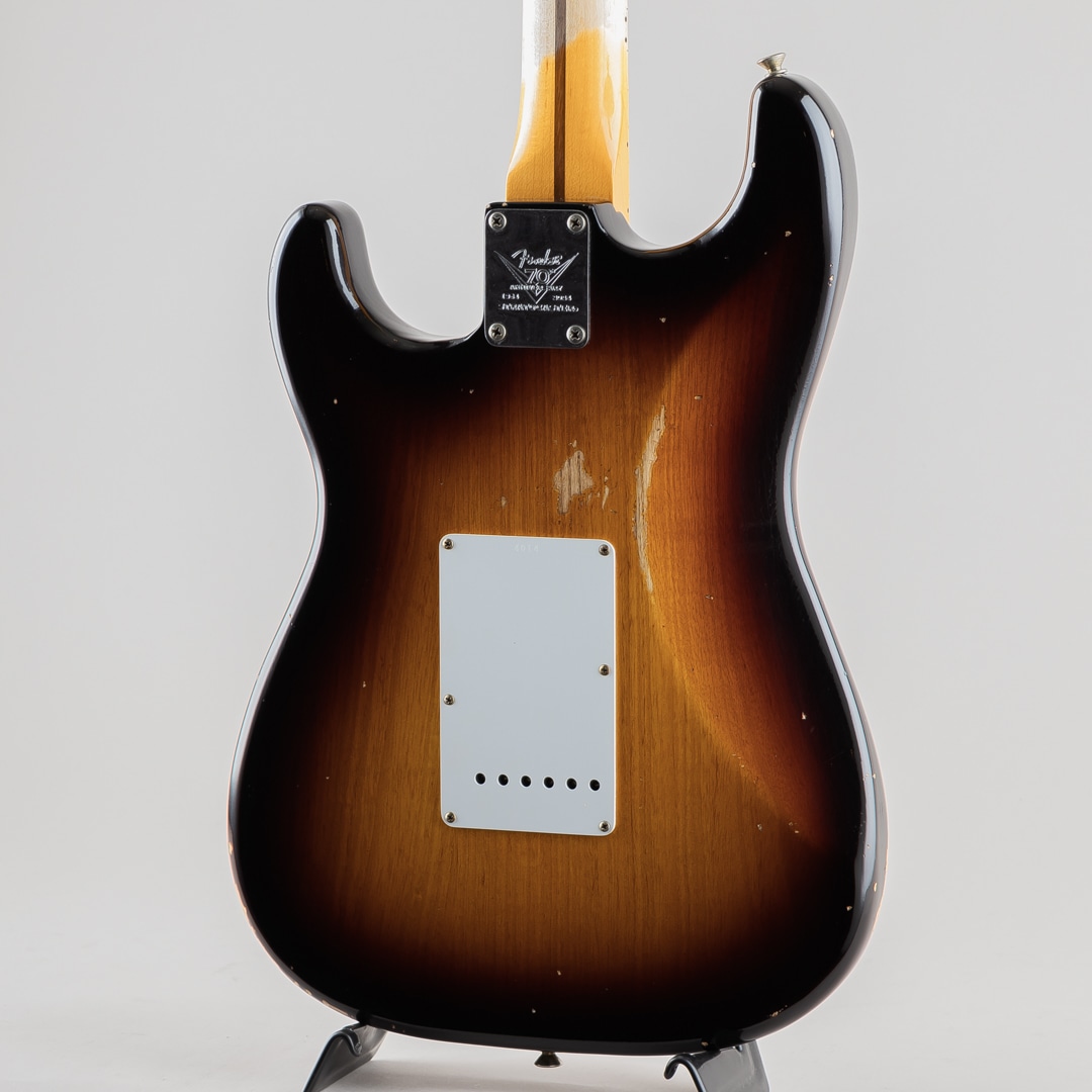 ワンピースクォーターソーンメイプルネックは、1954年7月に製作されたストラトキャスターネックをベースにデザインされており、特別な70th Anniversary Soft "V "シェイプです。21本のミディアムヴィンテージ(47095)フレットと、通常よりも少し幅が狭い1.625インチ幅ボーンナットを採用した7.25~9.5インチ仕様ヴィンテージコンパウンドラジアス指板、クリアでベルのようなハイエンドとクラシックなストラトキャスターのヴォイシングを提供する3基のカスタムショップ製Hand-Wound '54 Stratピックアップ、ワックスペーパーキャッパシターと5ウェイスイッチングを採用したVintage '54 Stratワイヤリングを備えています。